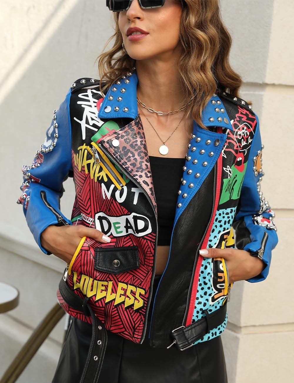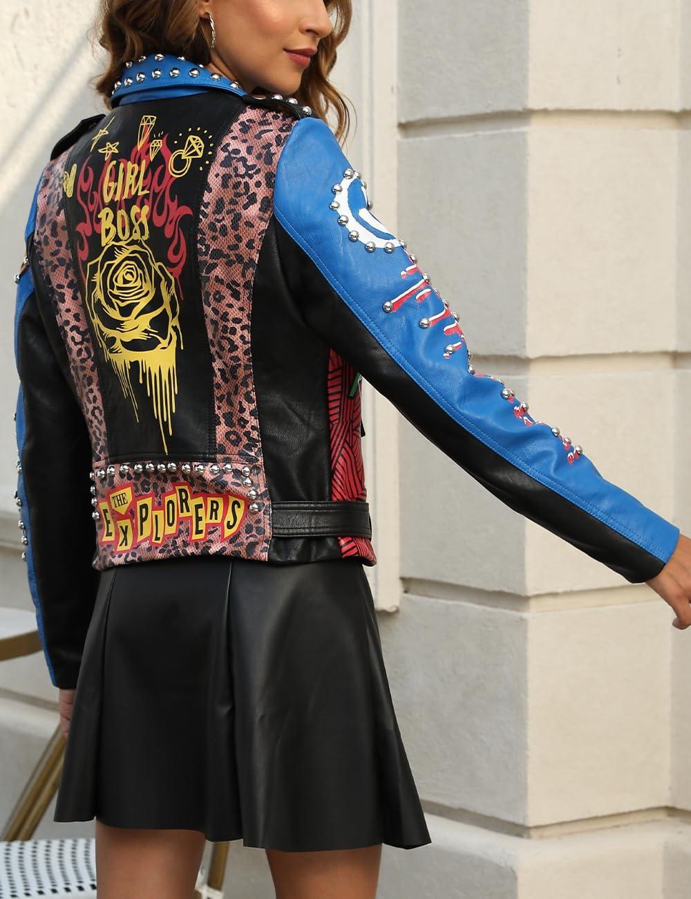 Don’t miss out on our limited-time offer: buy Bellivera Faux Leather Jacket for Women Studded Rivet Floral Moto Biker Short Lapel Coat(Blue), get {accessory} 50% off!