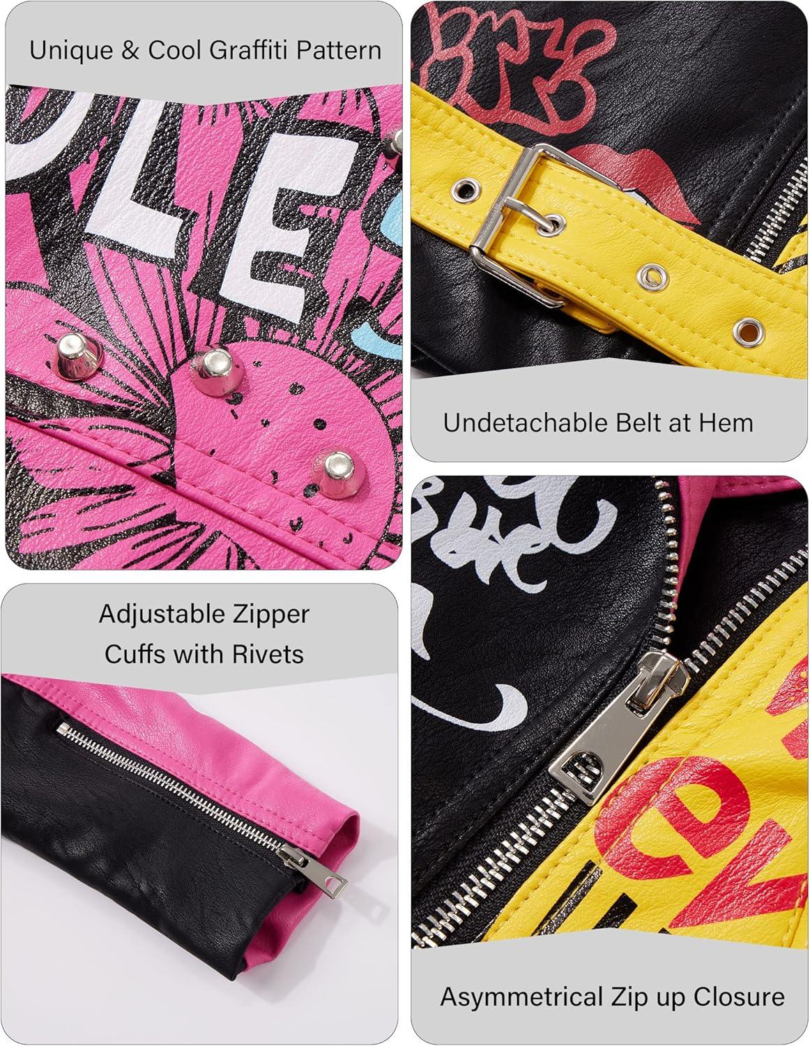 Be the first to review “Bellivera Faux Leather Jacket for Women Studded Rivet Floral Moto Biker Short Lapel Coat(Pink Blue)”