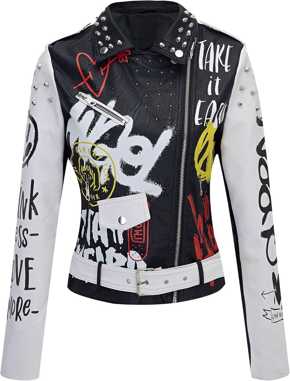 Be the first to review “Bellivera Faux Leather Jacket for Women Studded Rivet Floral Moto Biker Short Lapel Coat(White)”