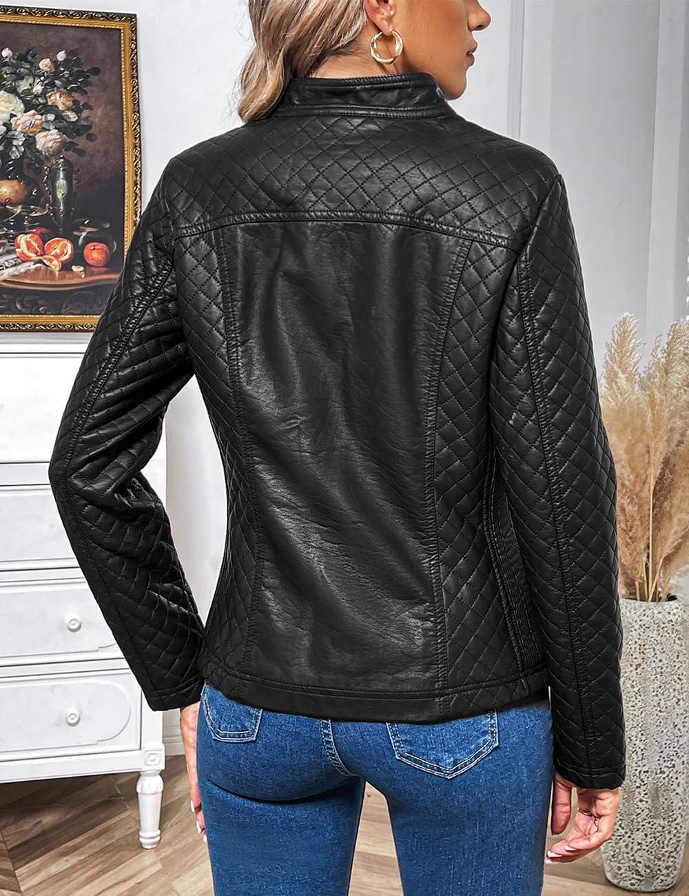 Bellivera Faux Leather Jacket Women Motorcycle Zipper Bomber PU Bike Coat with Pockets(Black Casual Jacket)
