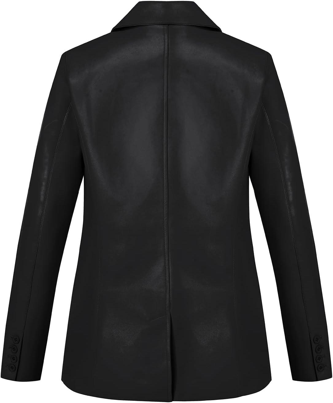 Bellivera Woman’s Faux Leather PU Blazer Open Front Business Casual Jacket Mid-Length Fall Fashion Coat with Pockets(Black Faux Leather Coat)