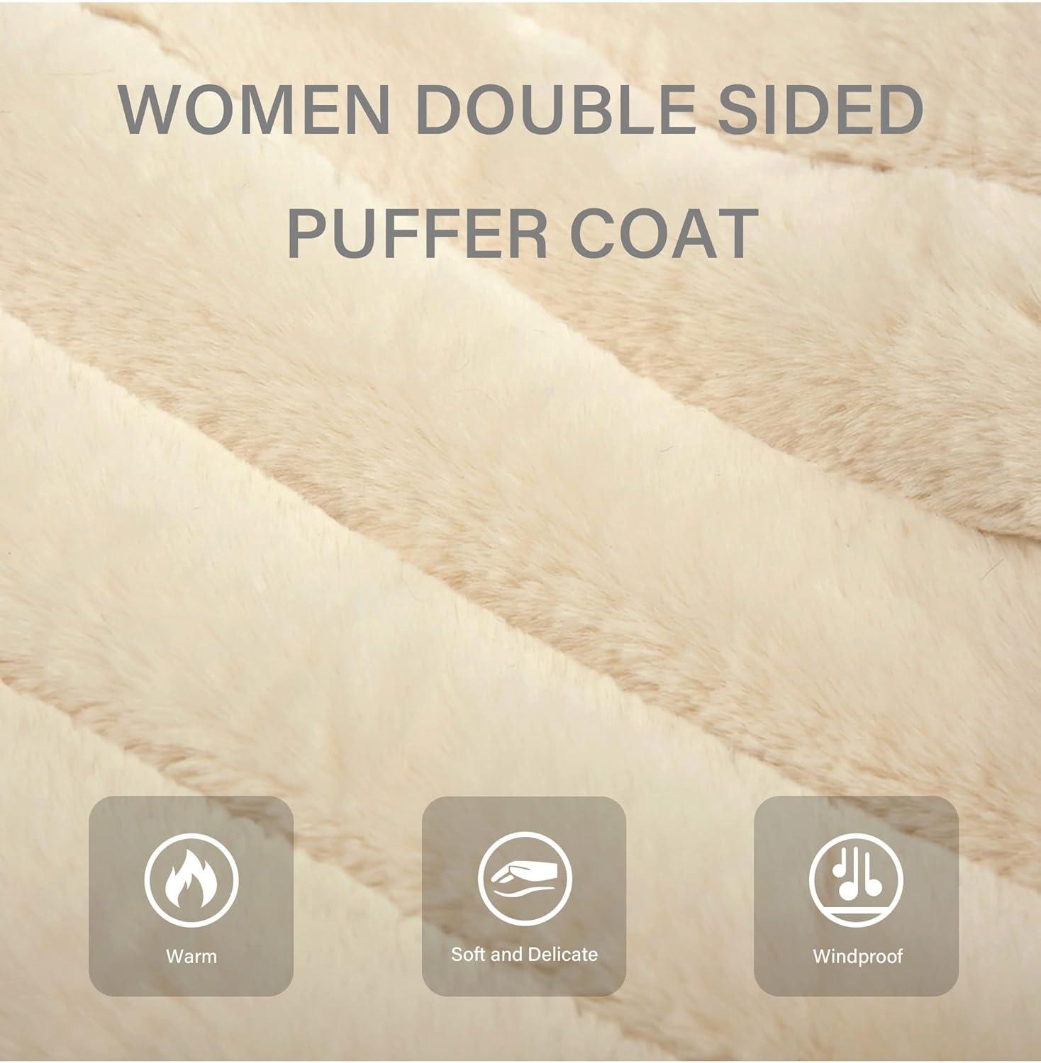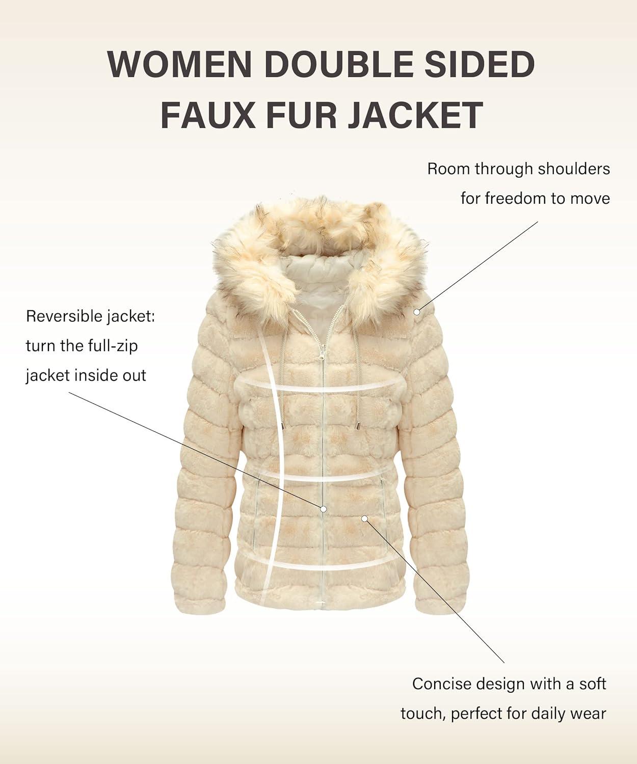 Bellivera Women Double Sided Faux Fur Jacket Spring and Winter Fashion Reversible Hood Puffer Coat with Fur Collar(Coffee)