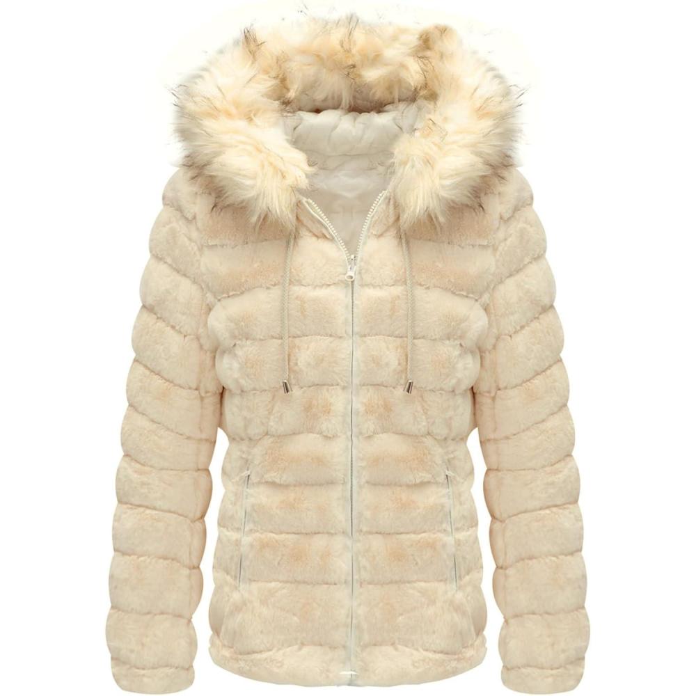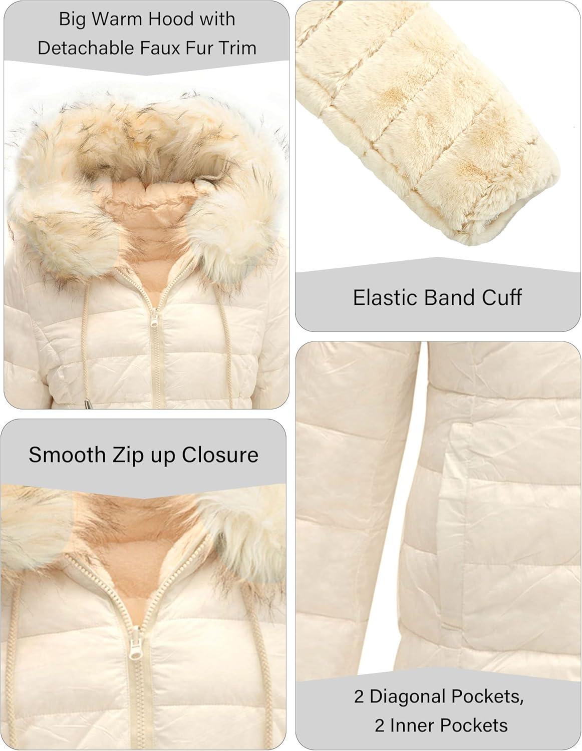 Bellivera Women Double Sided Faux Fur Jacket Spring and Winter Fashion Reversible Hood Puffer Coat with Fur Collar(Camel)