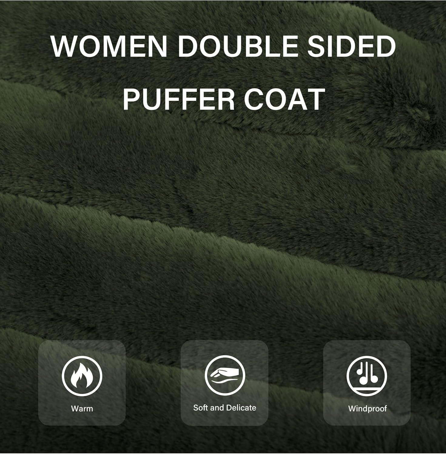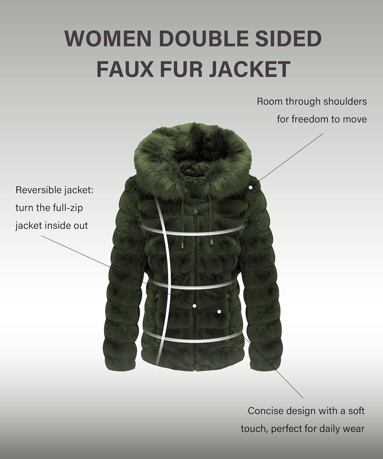 Bellivera Women Double Sided Faux Fur Jacket Spring and Winter Fashion Reversible Hood Puffer Coat with Fur Collar(Green)
