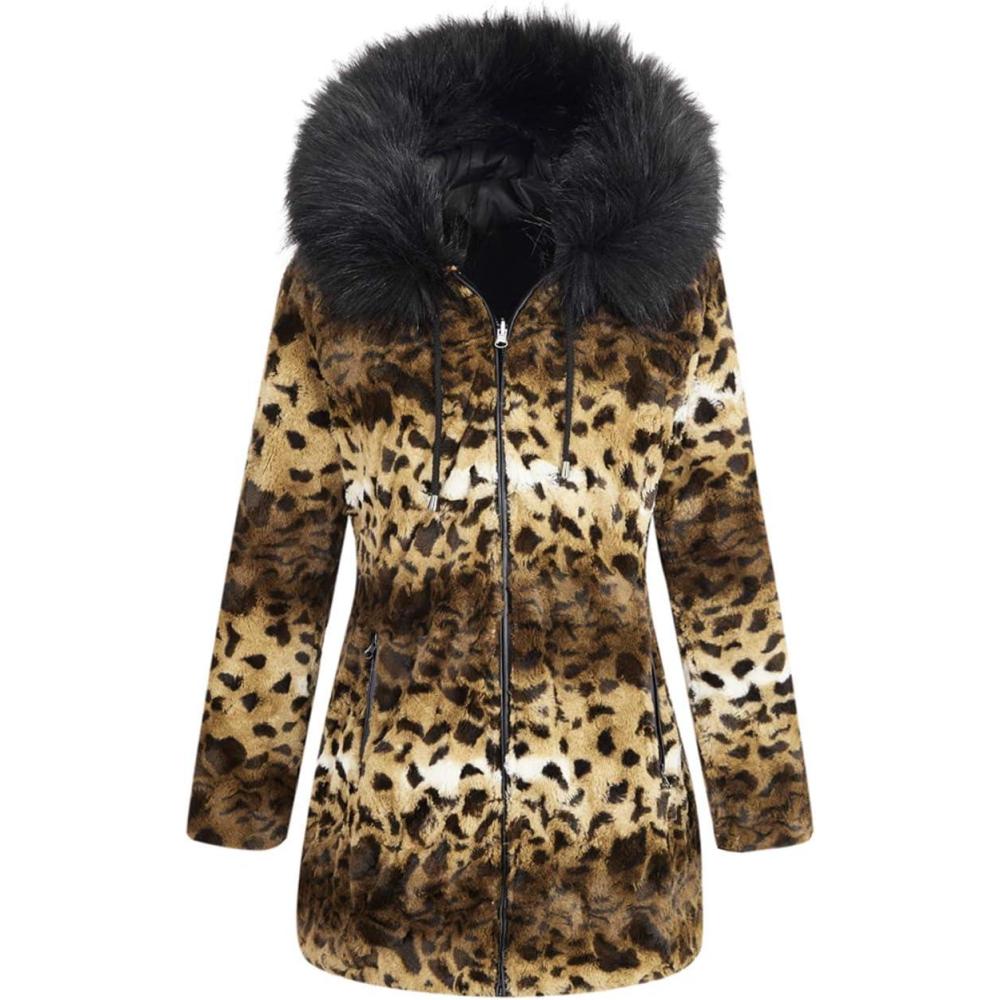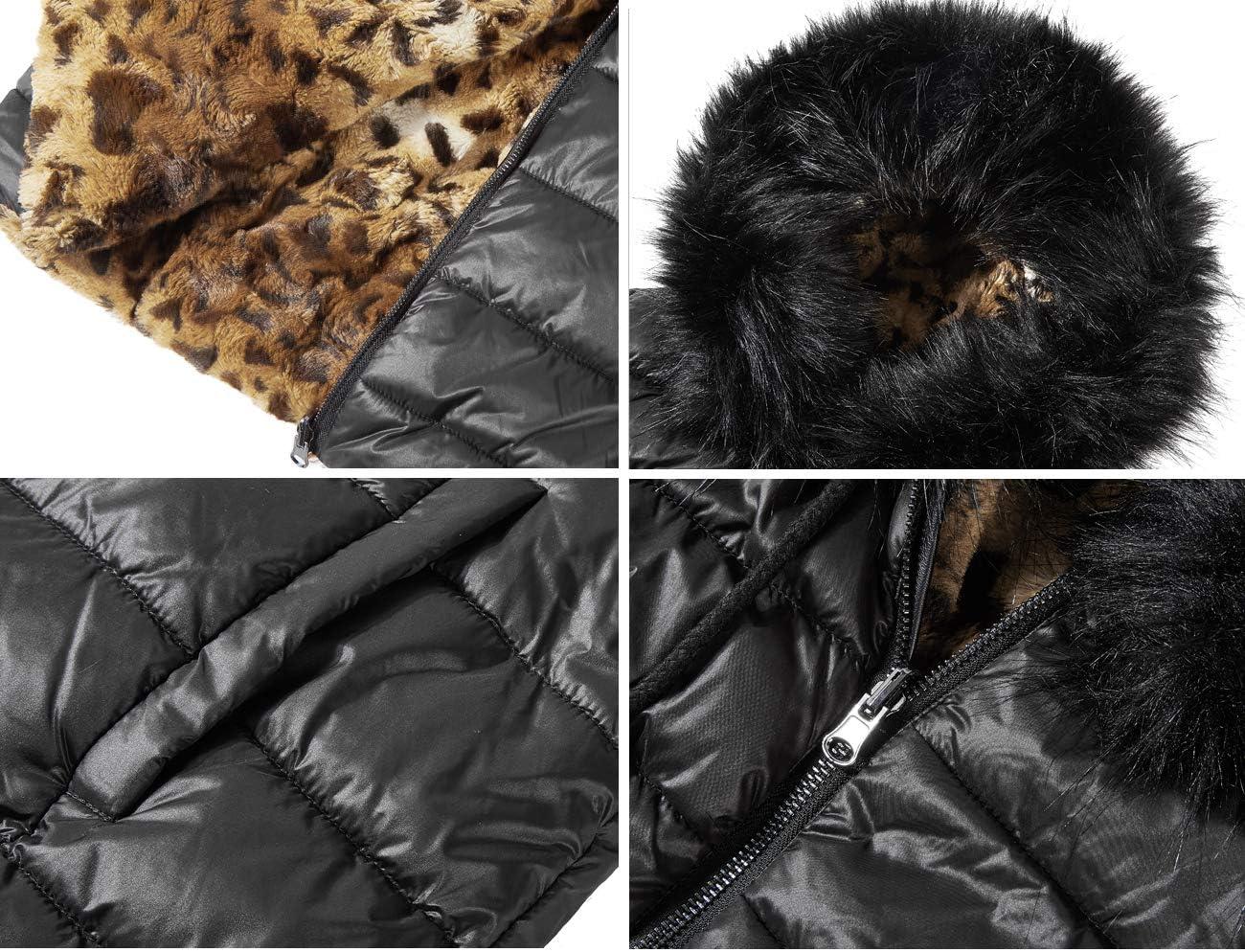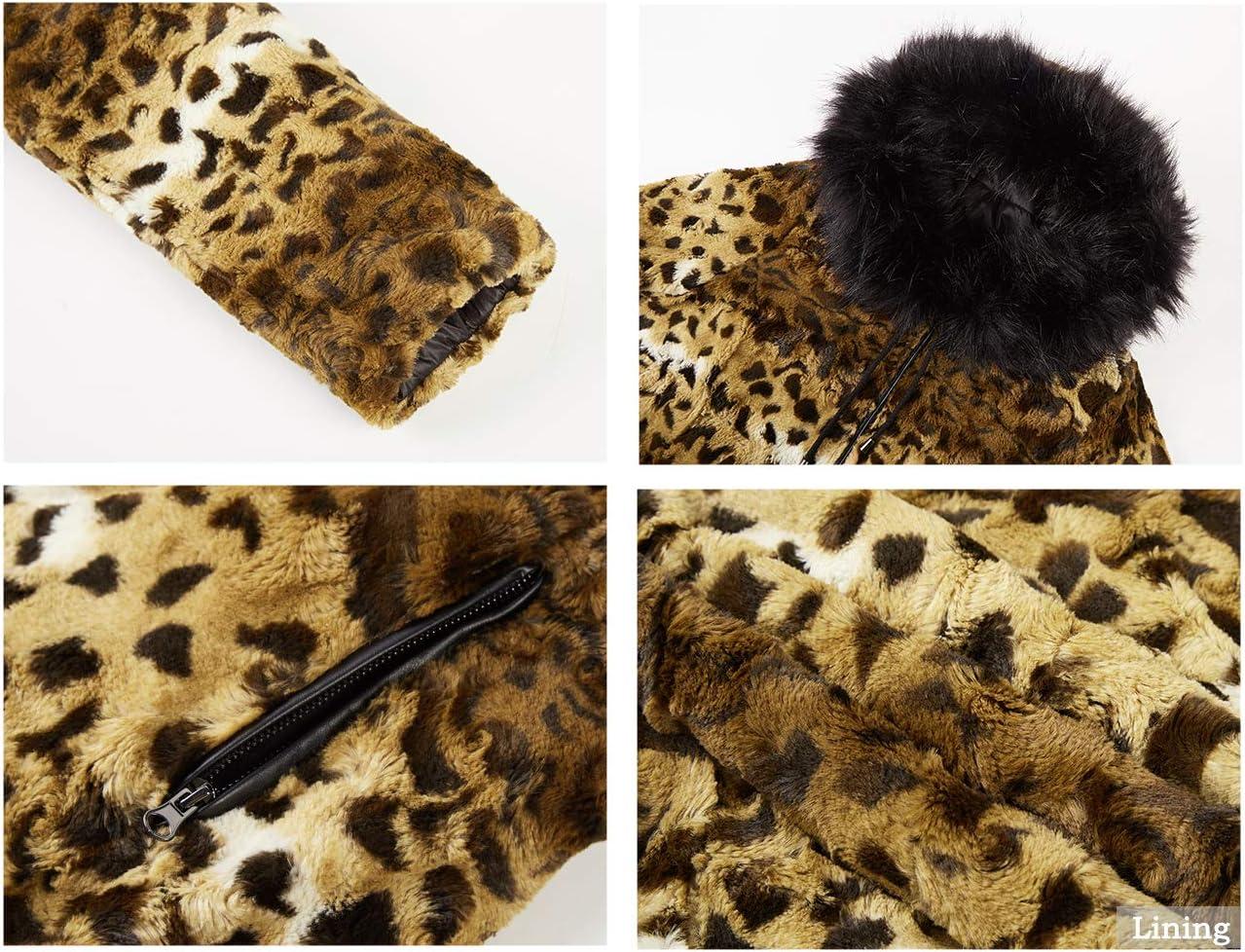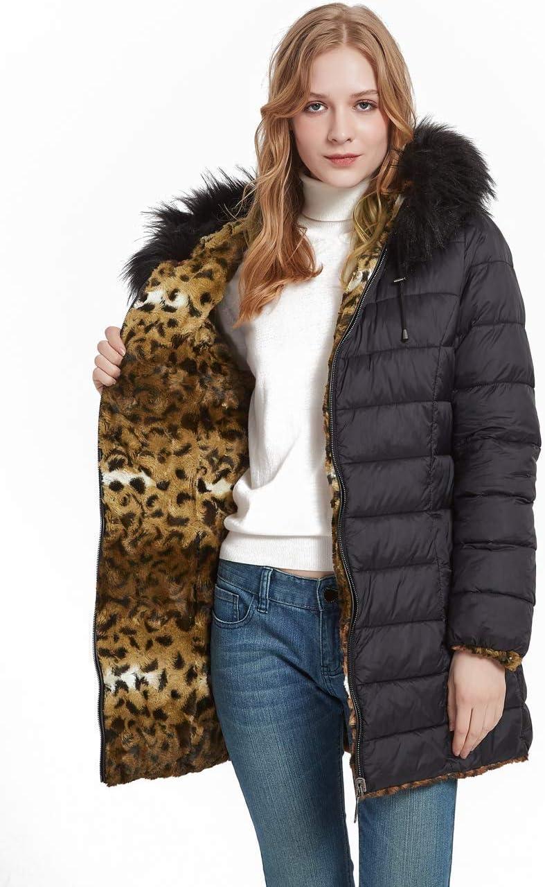 Bellivera Women Double Sided Faux Fur Jacket Spring and Winter Fashion Reversible Hood Puffer Coat with Fur Collar(Leopard)