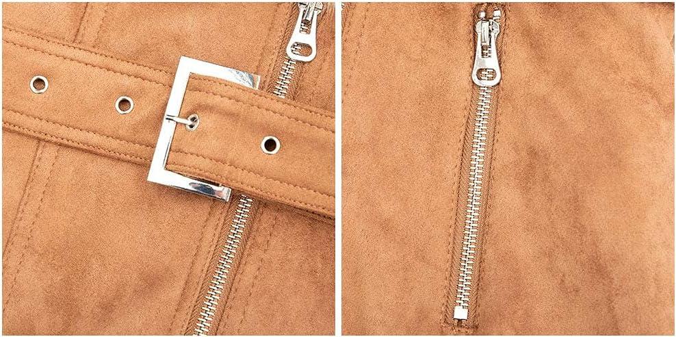 Bellivera Women Faux Leather Trench Coat Fleece-Lined Mid-length Jacket with Detachable Fur Collar(Brown)
