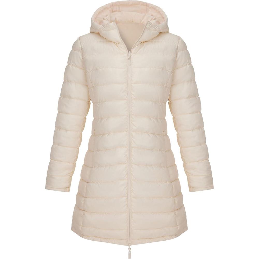Bellivera Women Puffer Jacket Reversible Spring and Winter Fashion Warm Quilted Long Hooded Padded Bubble Coat(White)