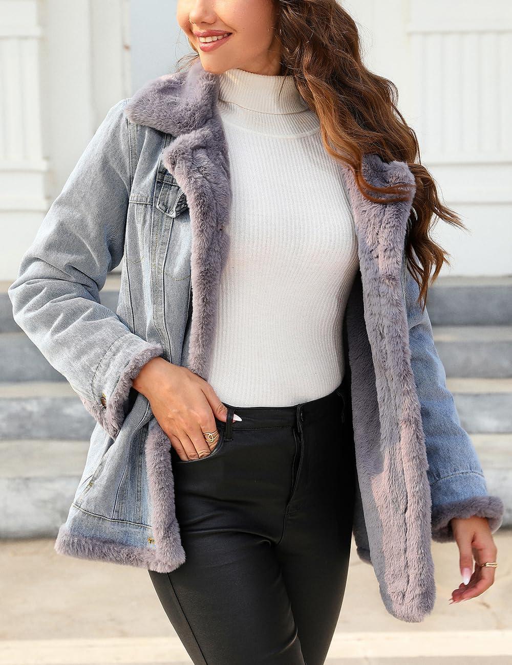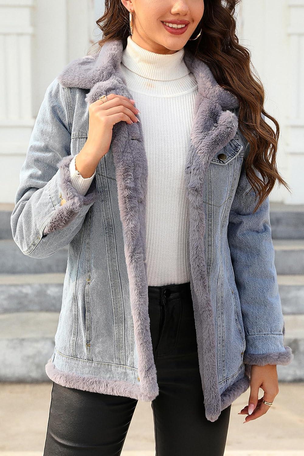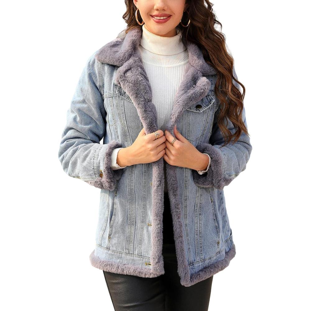 Our women's parka is a versatile and premium choice for the cooler months, offering durability and comfort with extensive coverage and superior wind protection. The adjustable waist drawstring and secure zipper closure ensure warmth, while zippered pockets provide convenient storage without compromising on style. The parka's fur-trimmed hood adds both visual appeal and insulation, and is detachable for versatility. Pair this parka with jeans and a sweater or t-shirt for a casual, yet polished look that's suitable for various occasions. The coat's soft faux-fur lining ensures all-day comfort and confidence, making it an essential for your winter wardrobe. For an additional layer of warmth and style, consider our women's fleece-lined denim jacket. Crafted from durable denim, it combines cozy fleece lining with a sophisticated design for lasting comfort in any weather. Ideal for outdoor activities, this sherpa fleece-lined denim jacket offers superior cold protection with fuzzy trimming and a fleece-lined lapel for extra comfort. It features a button closure and decorative spade flap pockets for both functionality and fashion-forward appeal. This denim jacket adds versatility to your wardrobe, suitable for casual or more formal occasions. Pair it with jeans for a relaxed look or layer it over a button-down shirt for a more polished ensemble. Enhance your outerwear collection with these stylish and practical pieces, designed to keep you warm and fashionable all season long.
