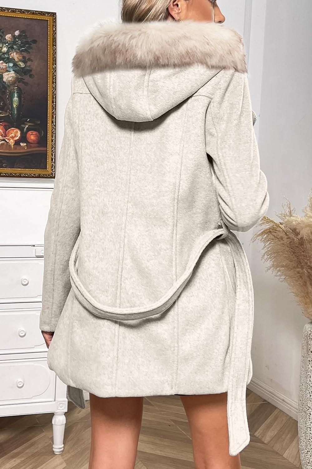 Bellivera Women Wool Jacket Blend Winter Mid Long Trench Coat Warm Pea Overcoat(Beige Apricot With Collar Coat)