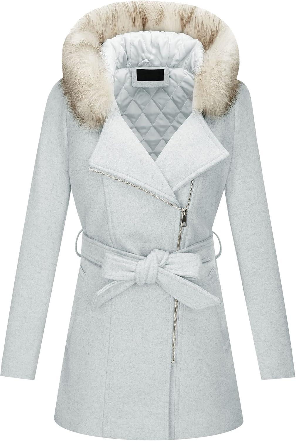 Bellivera Women Wool Jacket Blend Winter Mid Long Trench Coat Warm Pea Overcoat(Beigegray With Collar Coat)