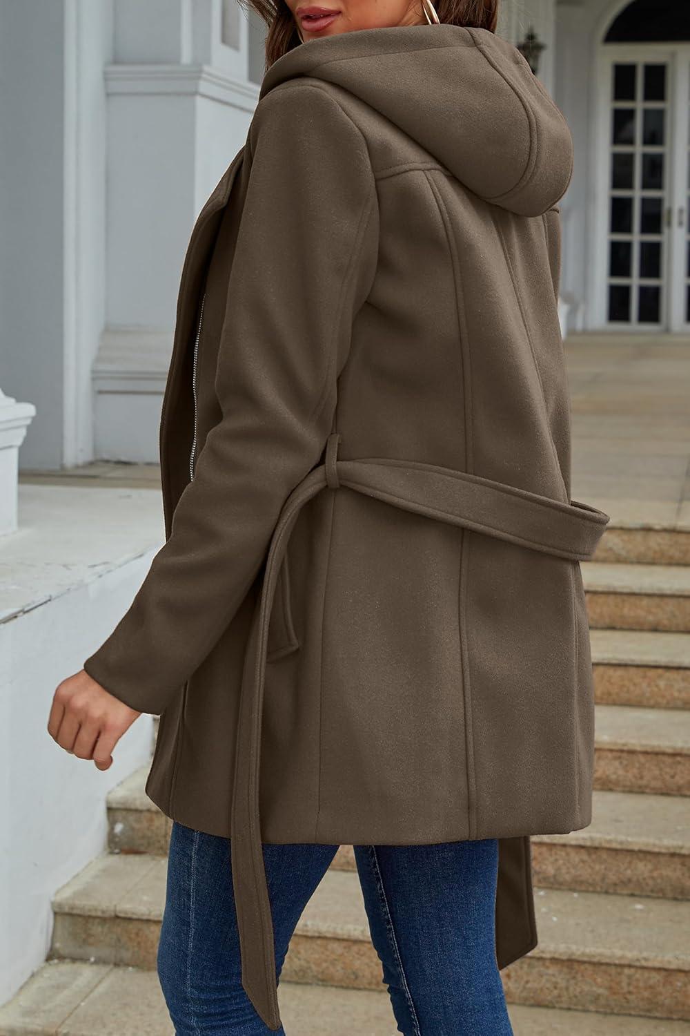Bellivera Women Wool Jacket Blend Winter Mid Long Trench Coat Warm Pea Overcoat(Camel Coat)