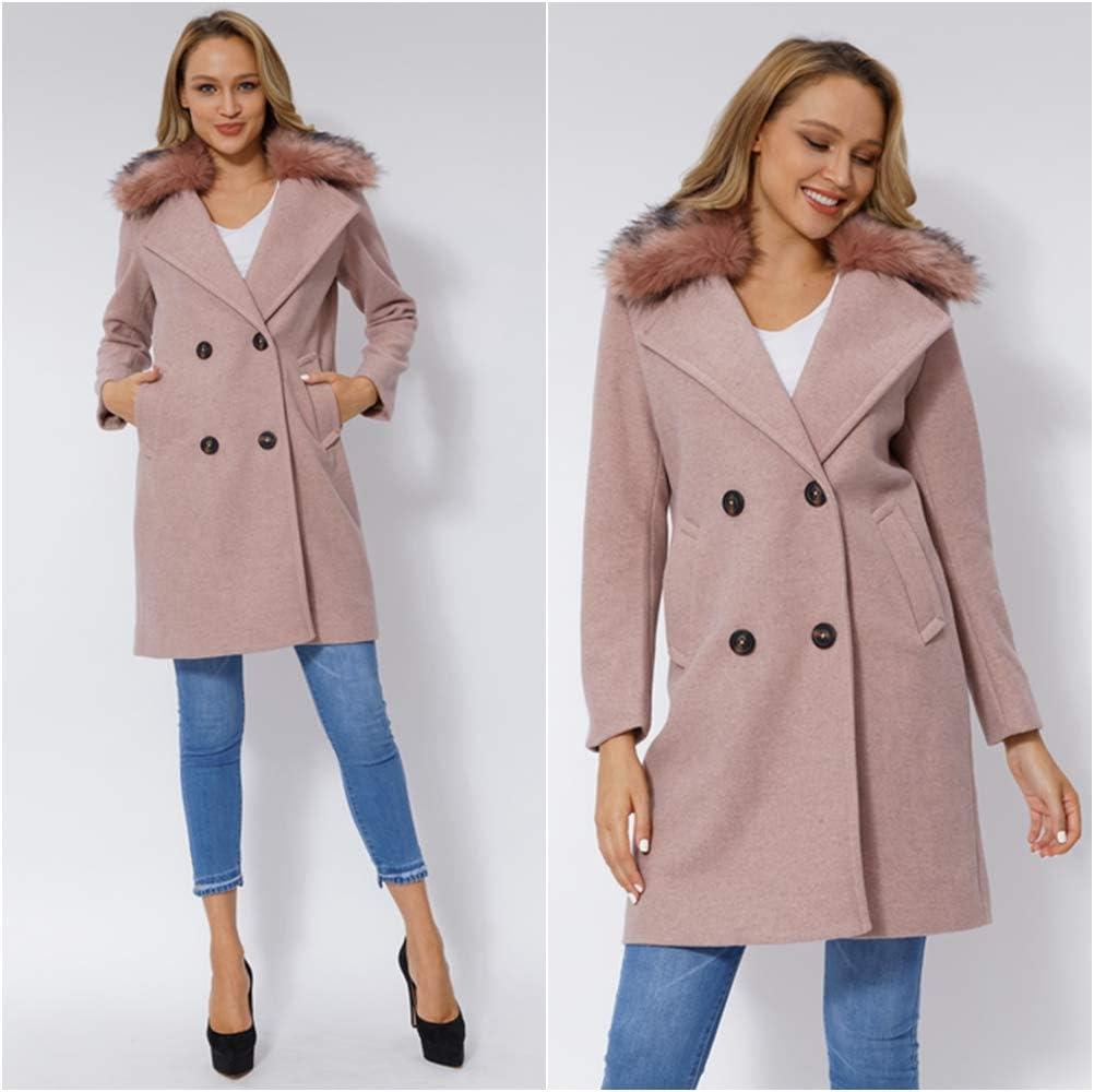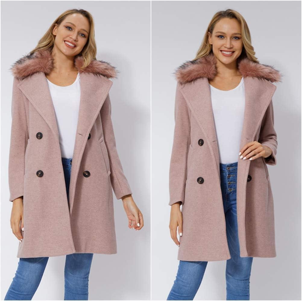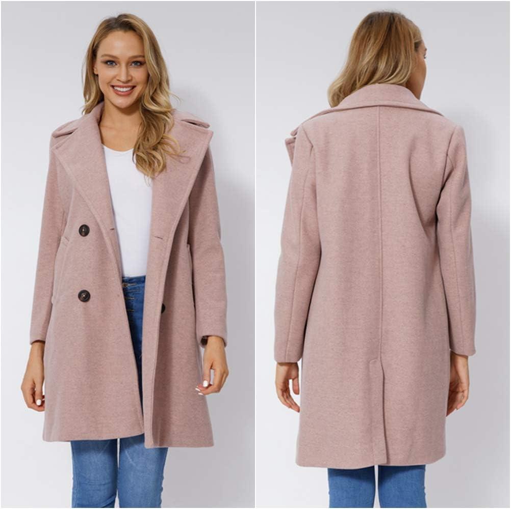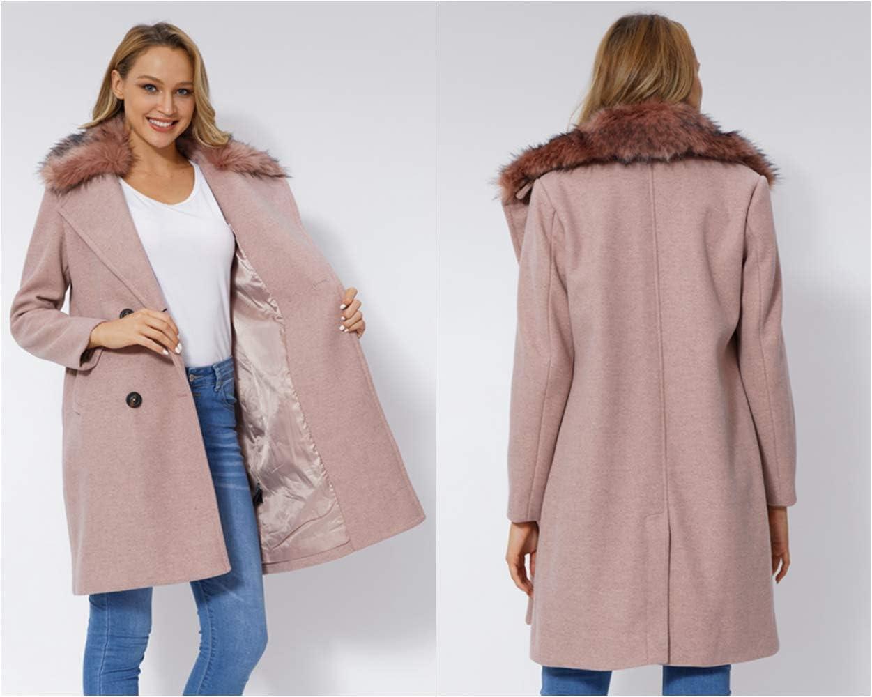 Bellivera Women Wool Jacket Blend Winter Mid Long Trench Coat Warm Pea Overcoat(Pink With Collar)