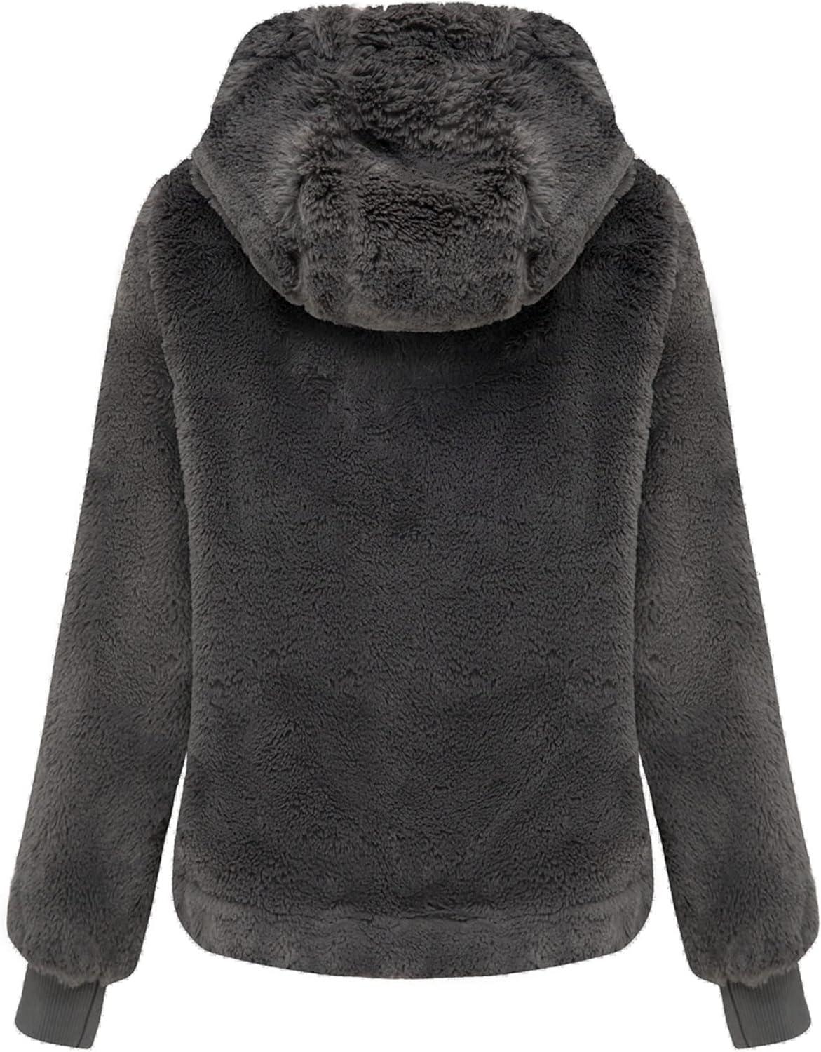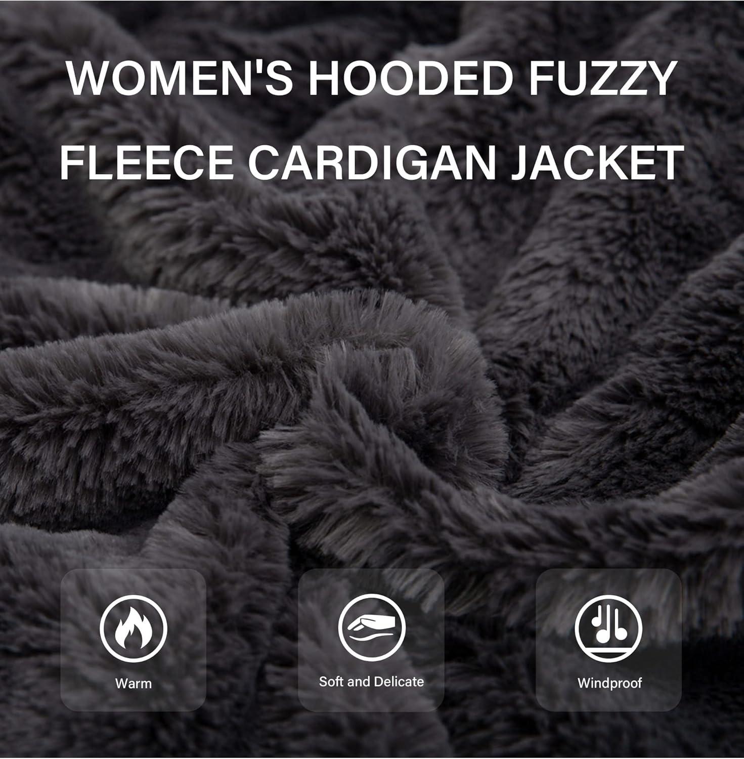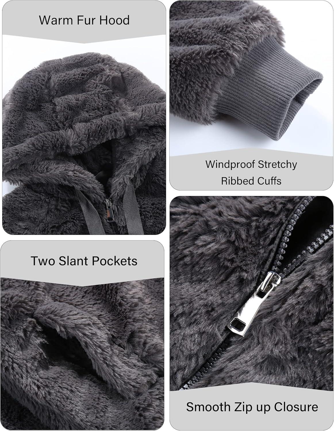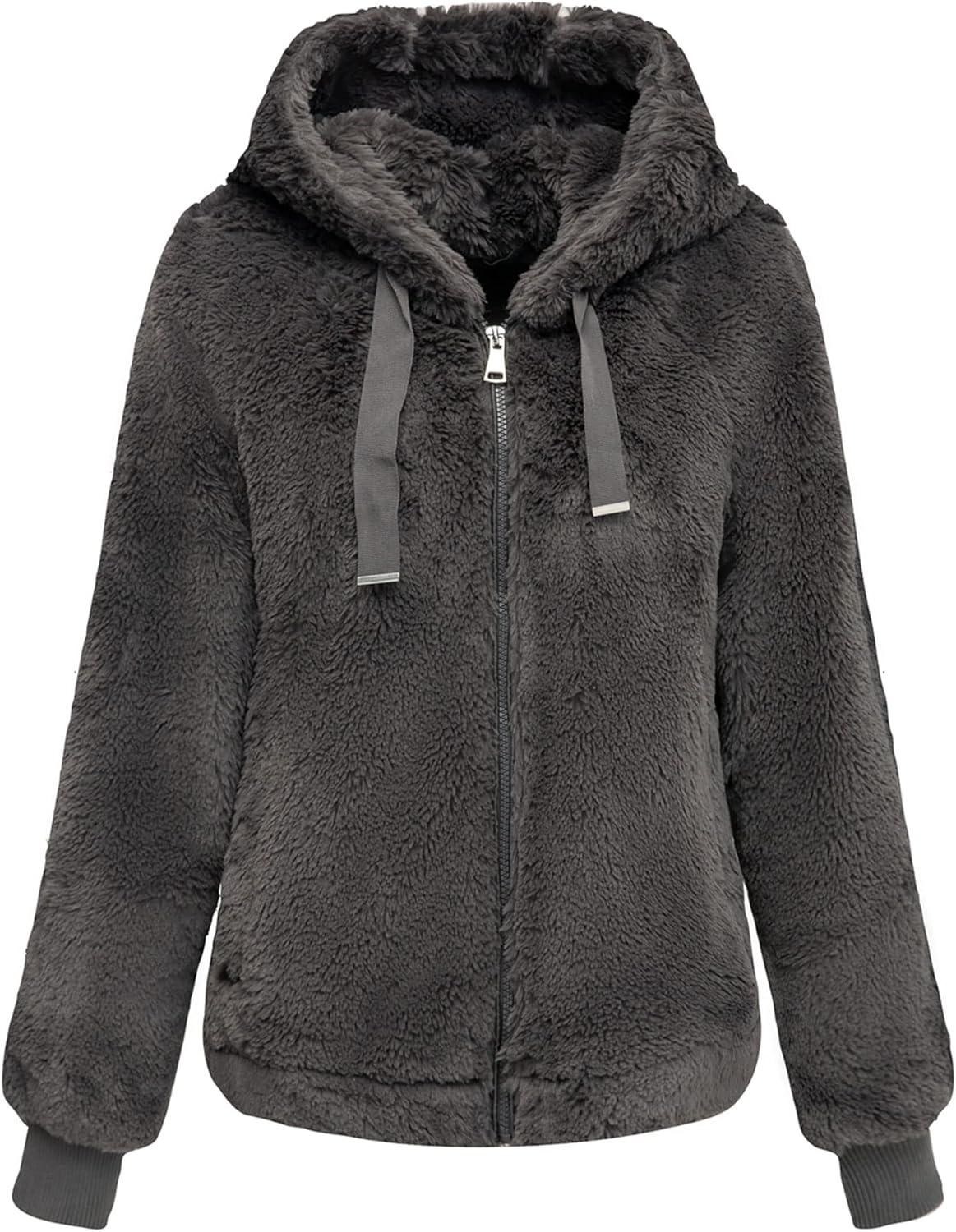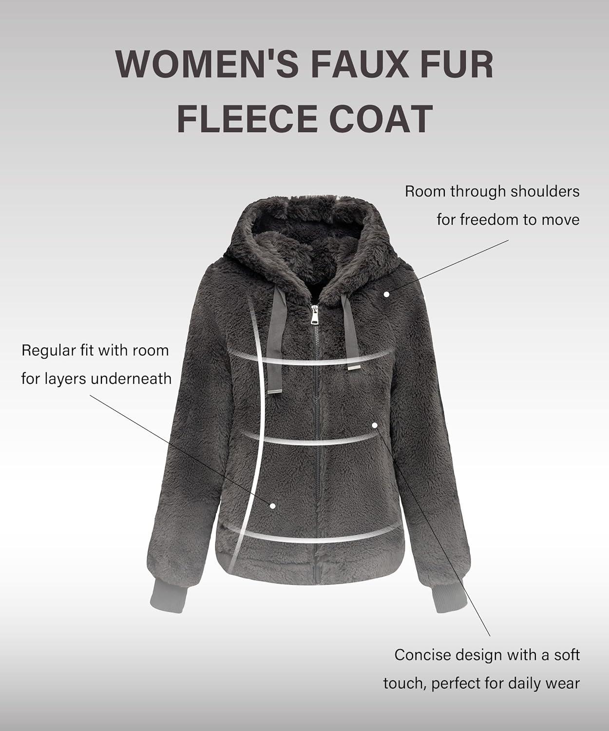 Bellivera Women’s Faux Fur Coat Shearling Fluffy Fuzzy Shaggy Hood Sherpa-Lined Fleece Jacket(Gray Faux Fur)