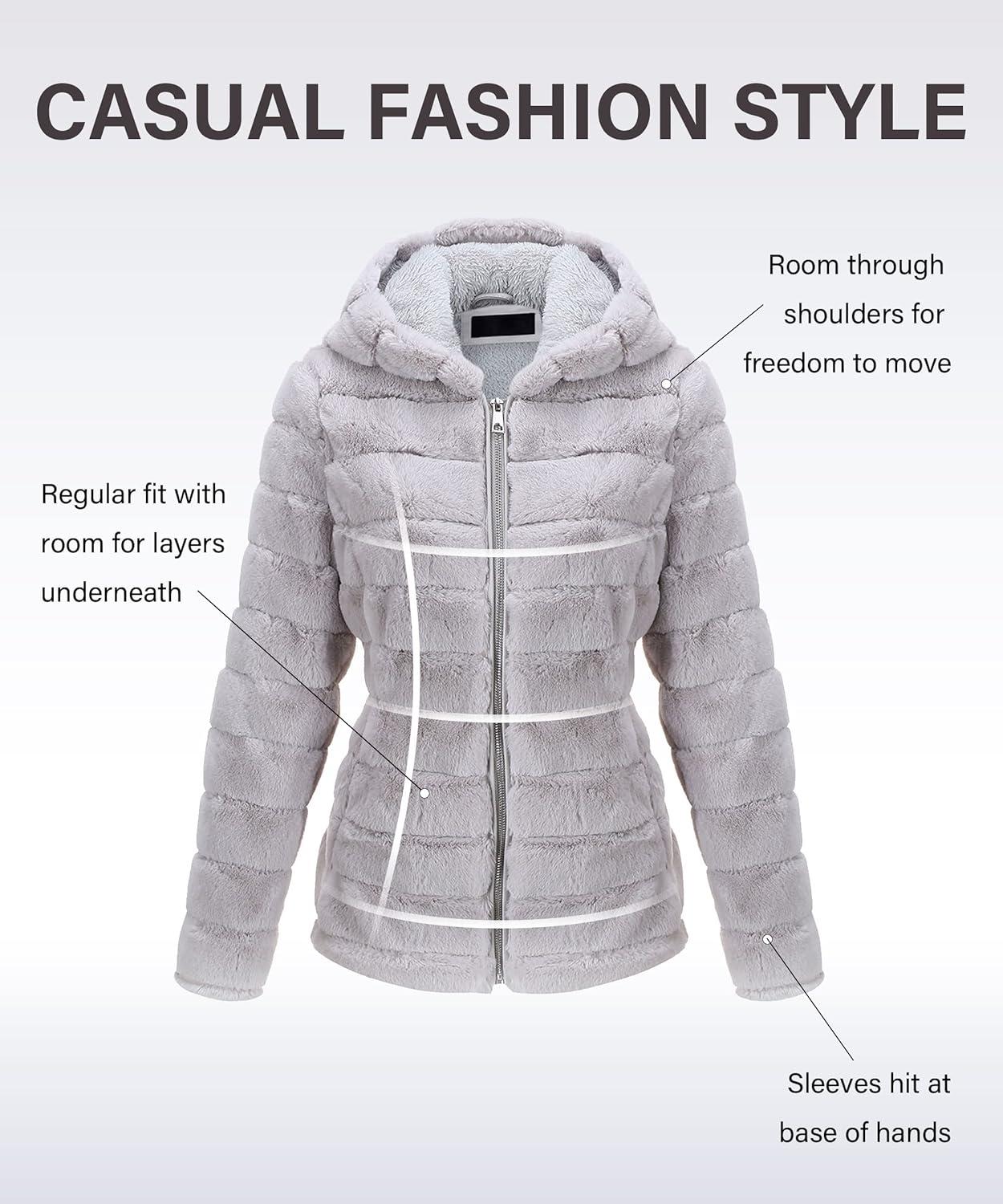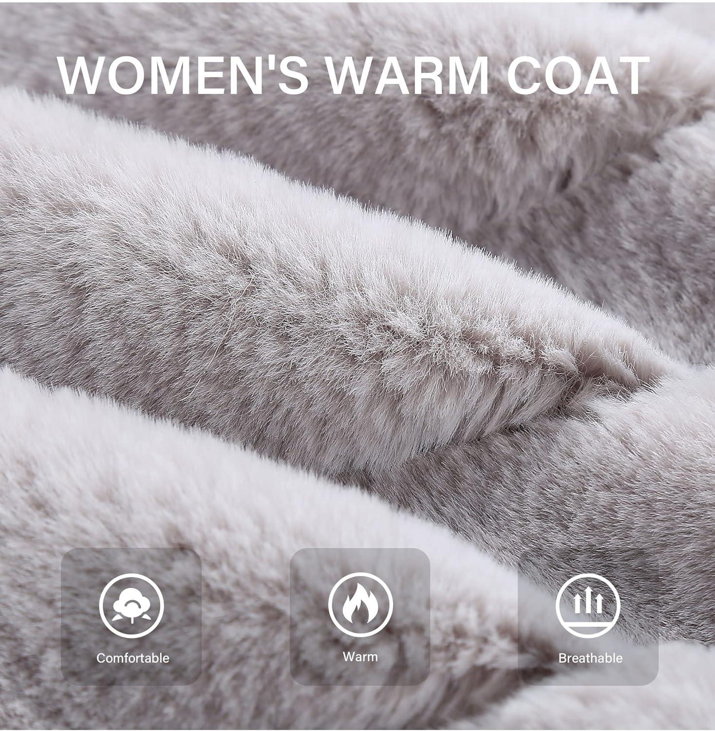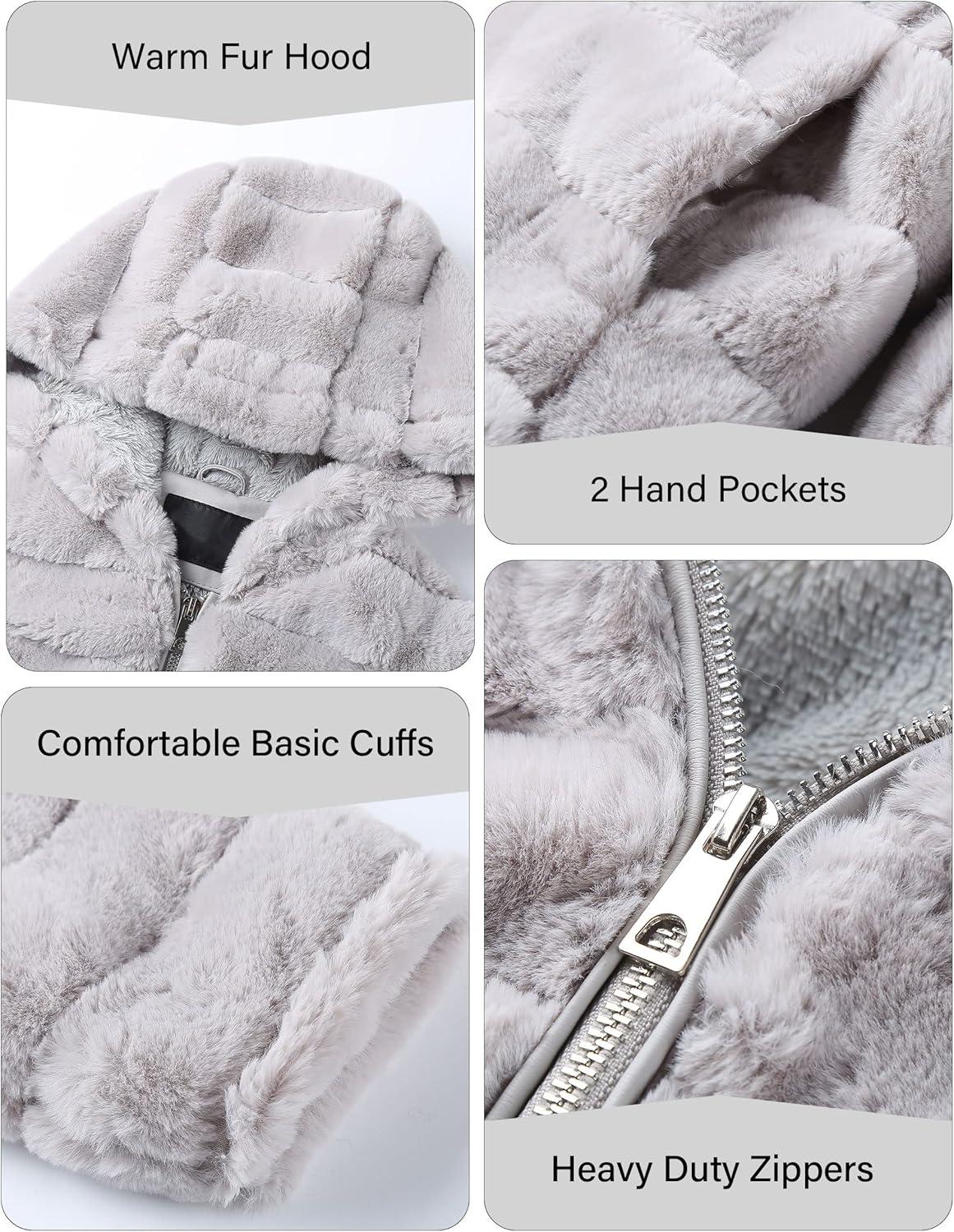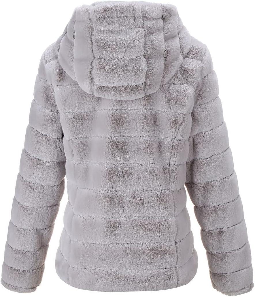Bellivera Women’s Faux Fur Coat Shearling Fluffy Fuzzy Shaggy Hood Sherpa-Lined Fleece Jacket(Gray)
