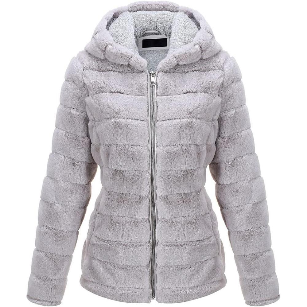 Bellivera Women’s Faux Fur Coat Shearling Fluffy Fuzzy Shaggy Hood Sherpa-Lined Fleece Jacket(Grey Coat)