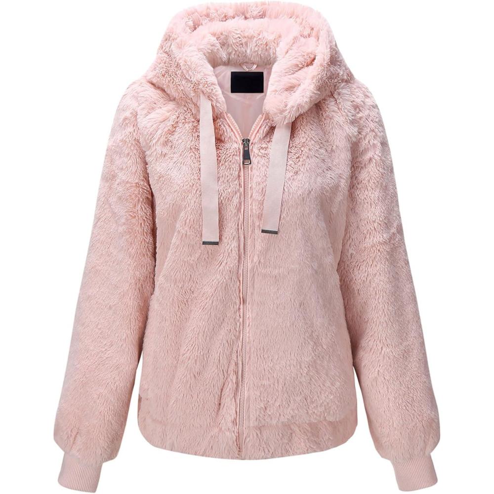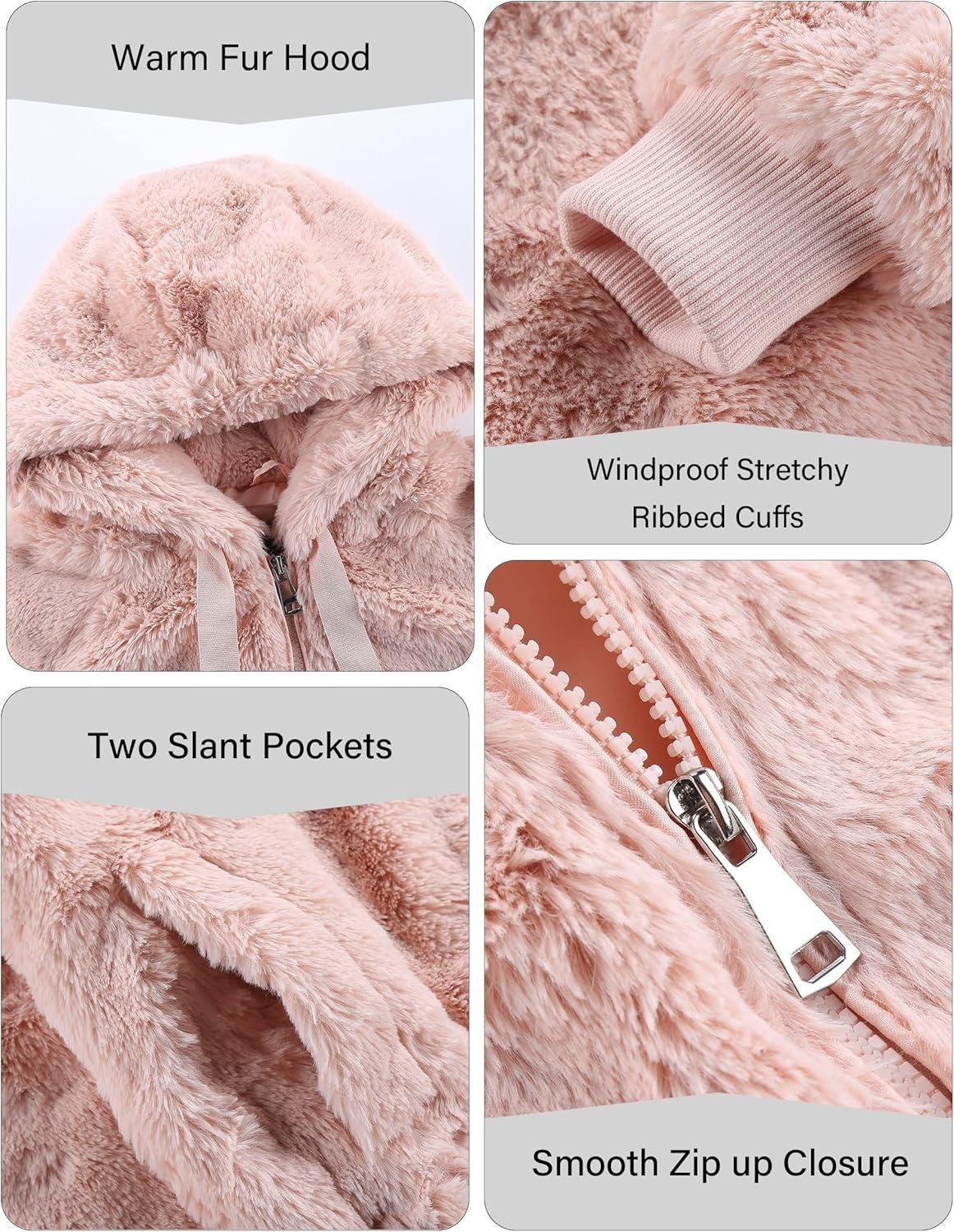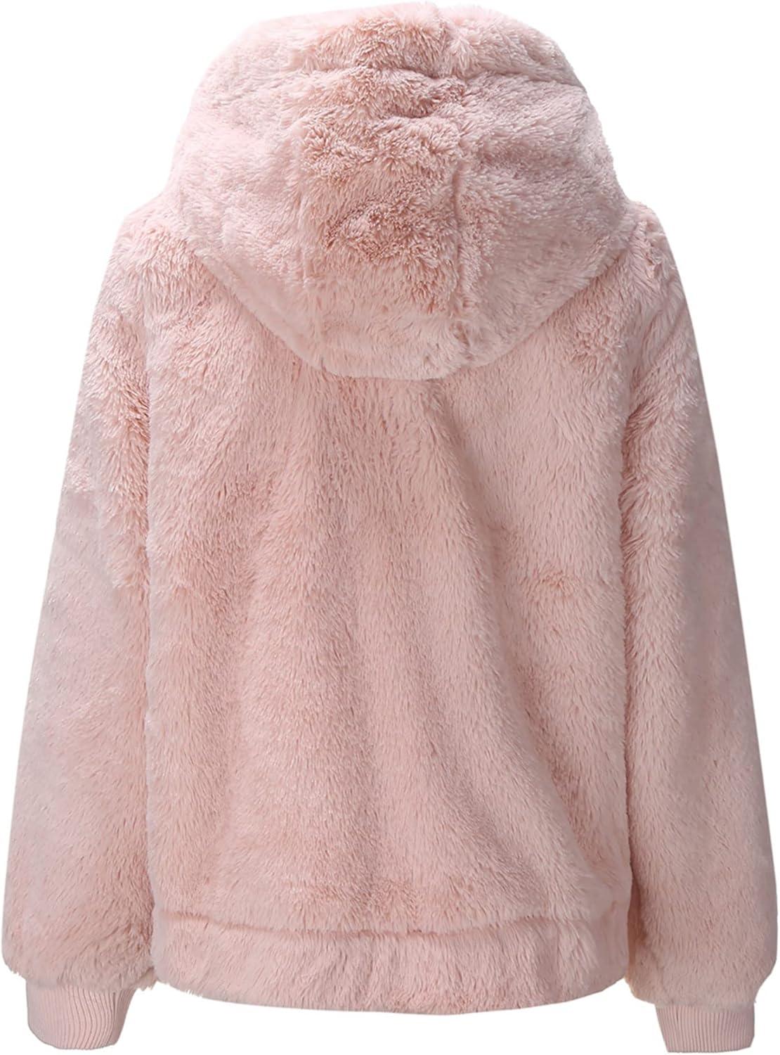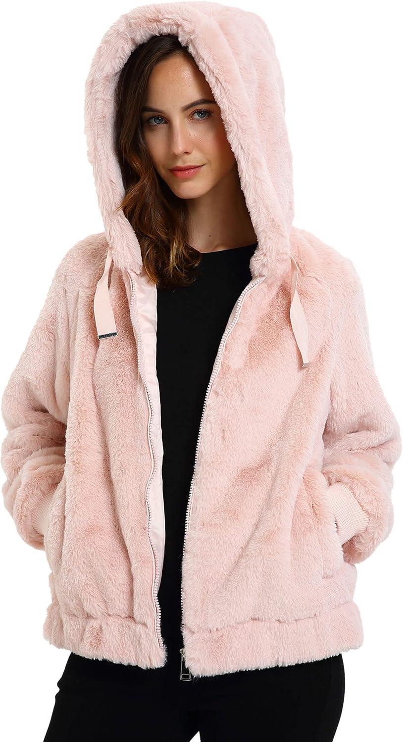 Bellivera Women’s Faux Fur Coat Shearling Fluffy Fuzzy Shaggy Hood Sherpa-Lined Fleece Jacket(Pink Faux Fur)
