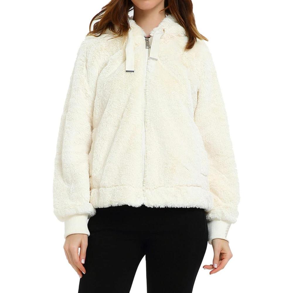 Bellivera Women’s Faux Fur Coat Shearling Fluffy Fuzzy Shaggy Hood Sherpa-Lined Fleece Jacket(White Coat)