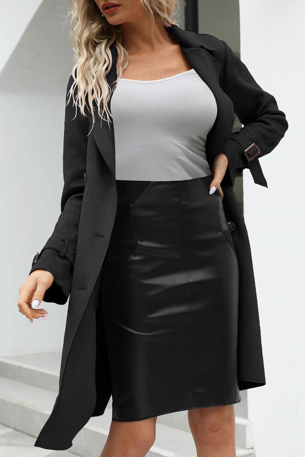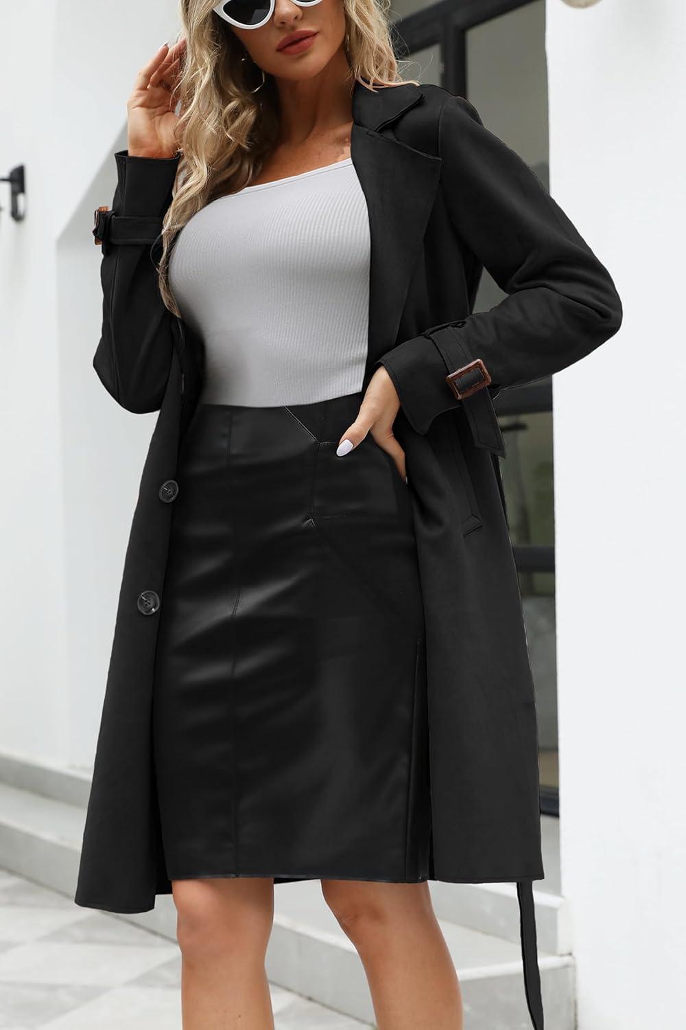 Bellivera Womens Faux Suede Leather Jacket Spring and Winter Fashion Long Trench Coat, Lightweight Windbreaker(Black)