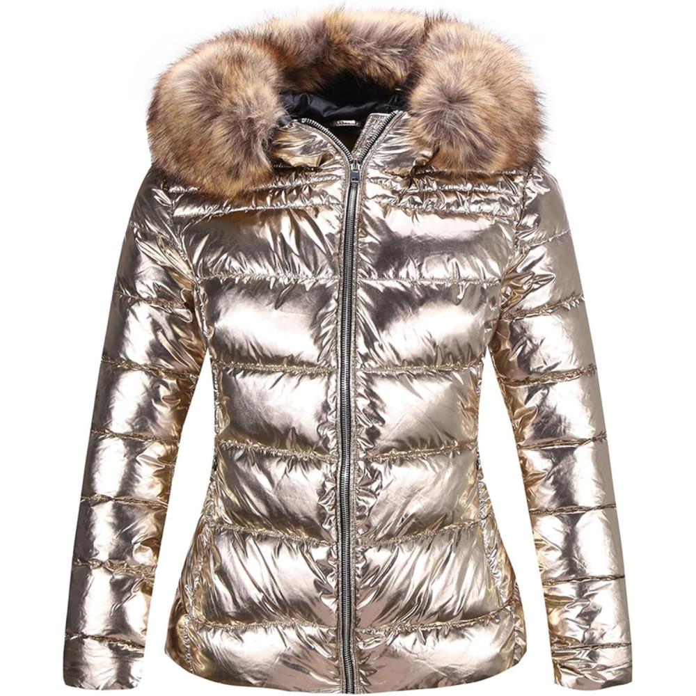 Bellivera Womens Lightweight Puffer Jacket, Winter Coats for Women Warm Quilted Bubble Padded Hood Coat with Faux Fur Collar(Gold)