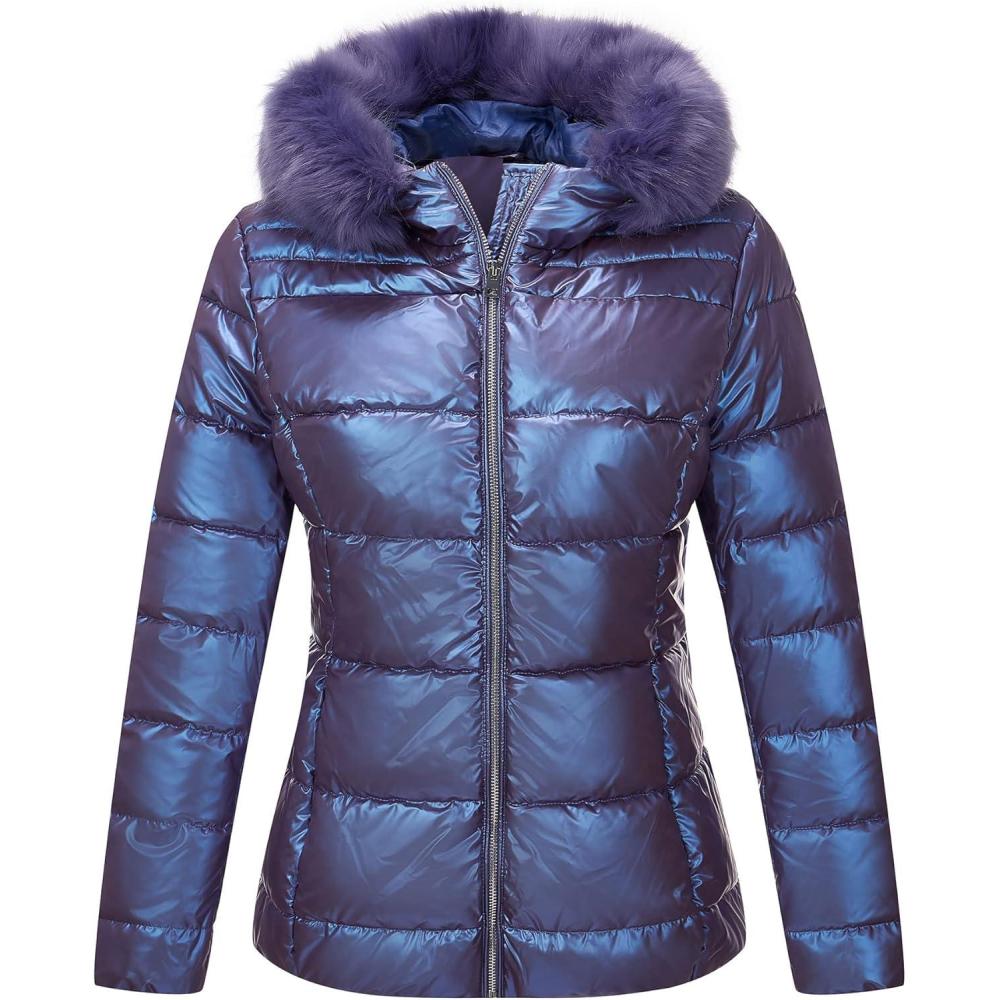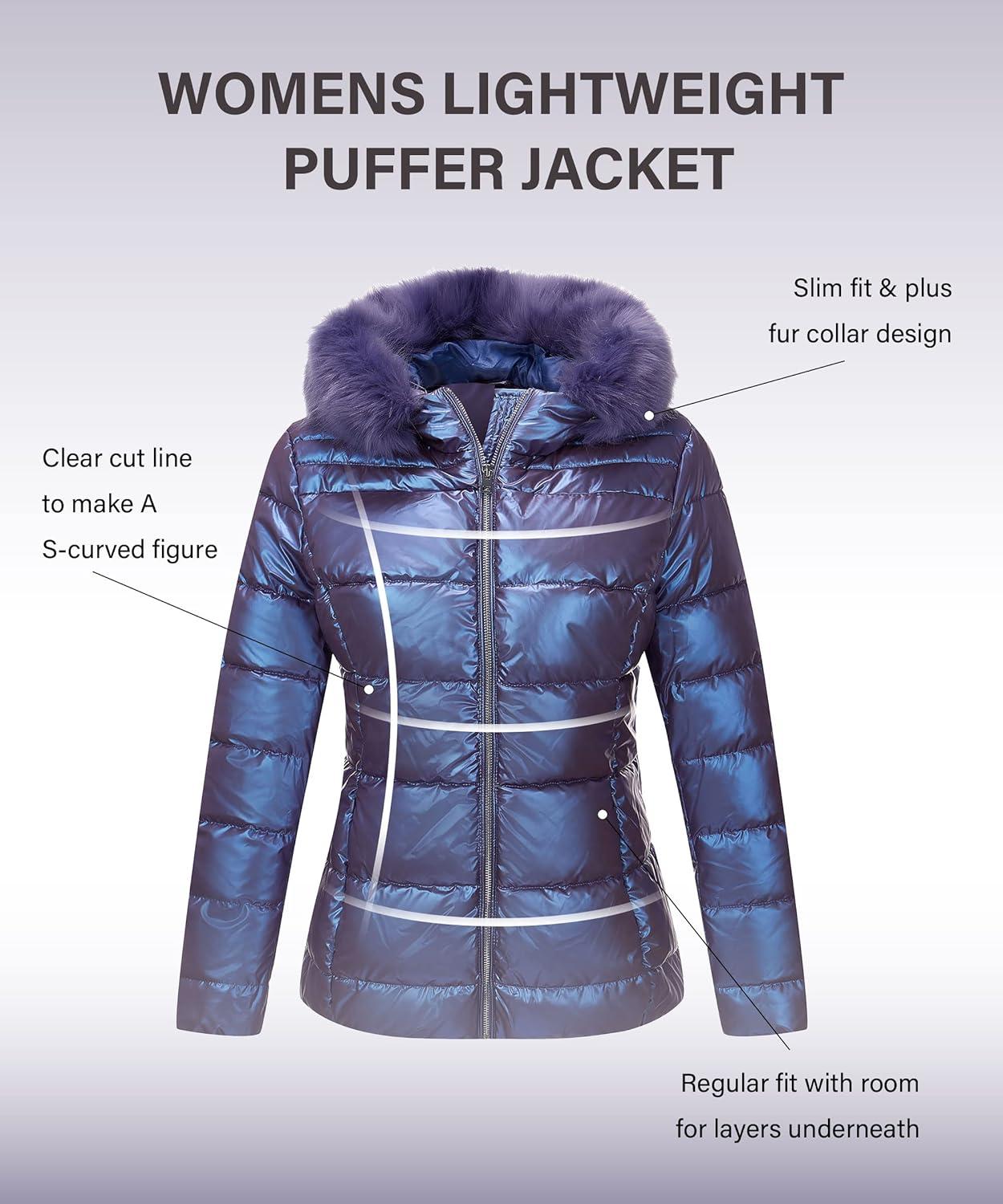 Bellivera Womens Lightweight Puffer Jacket, Winter Coats for Women Warm Quilted Bubble Padded Hood Coat with Faux Fur Collar(Purple)
