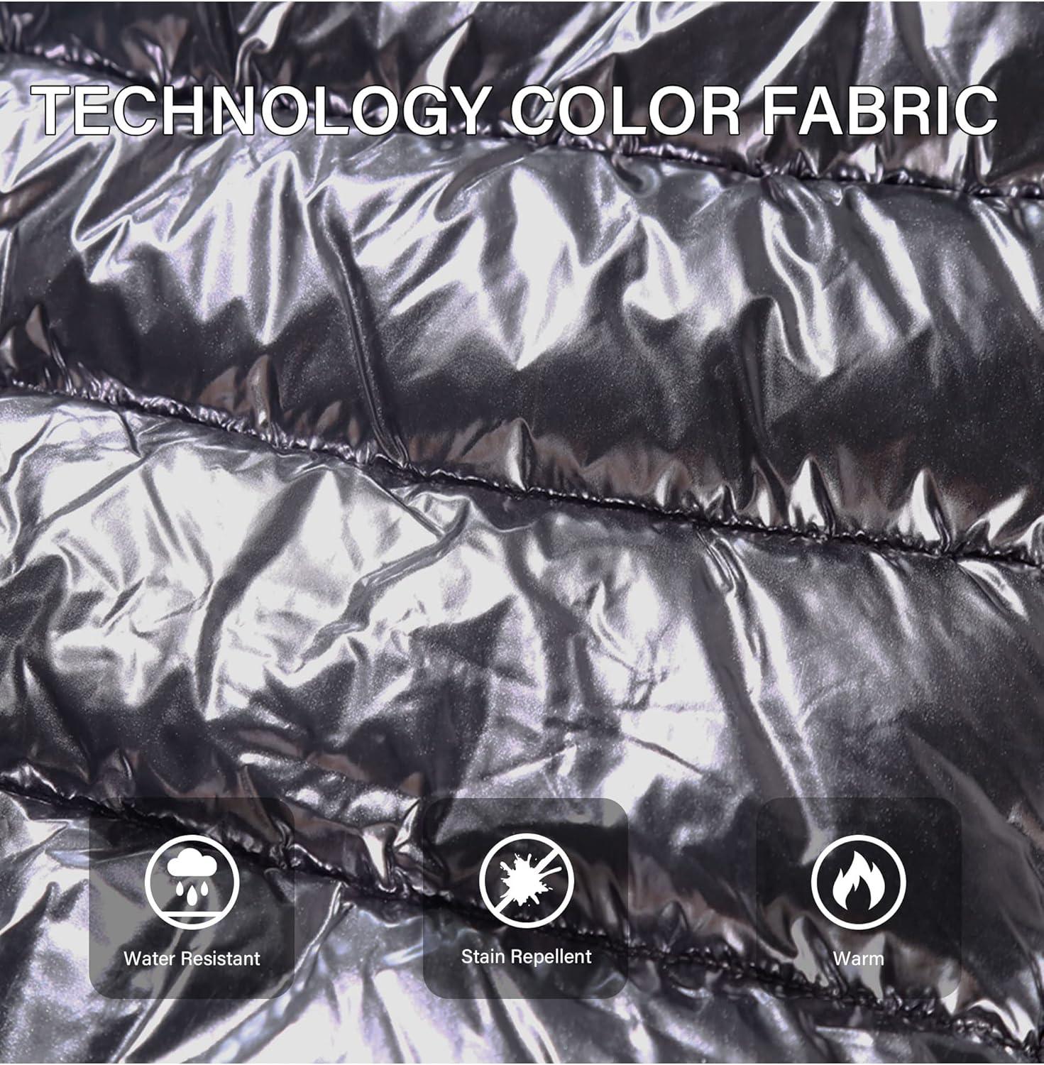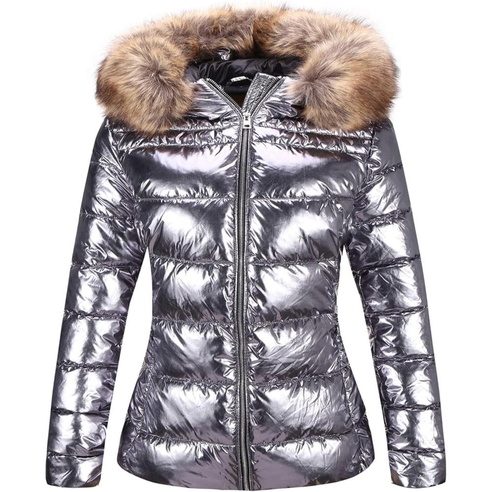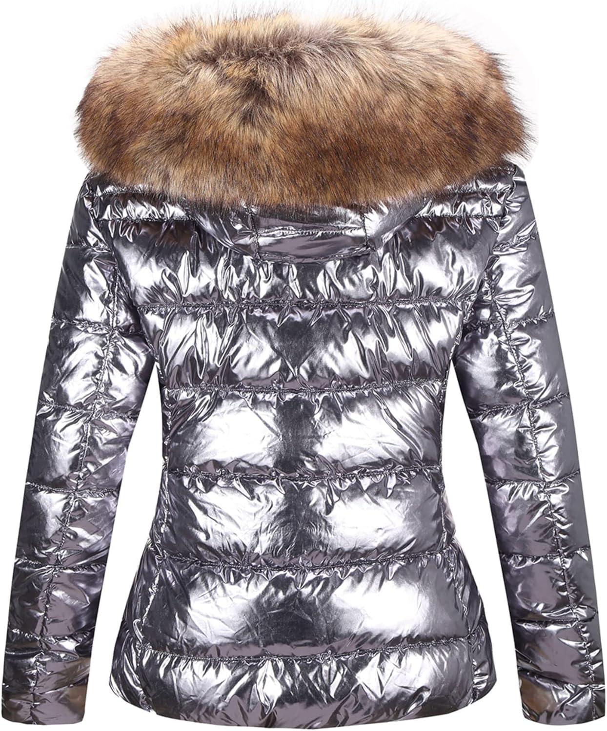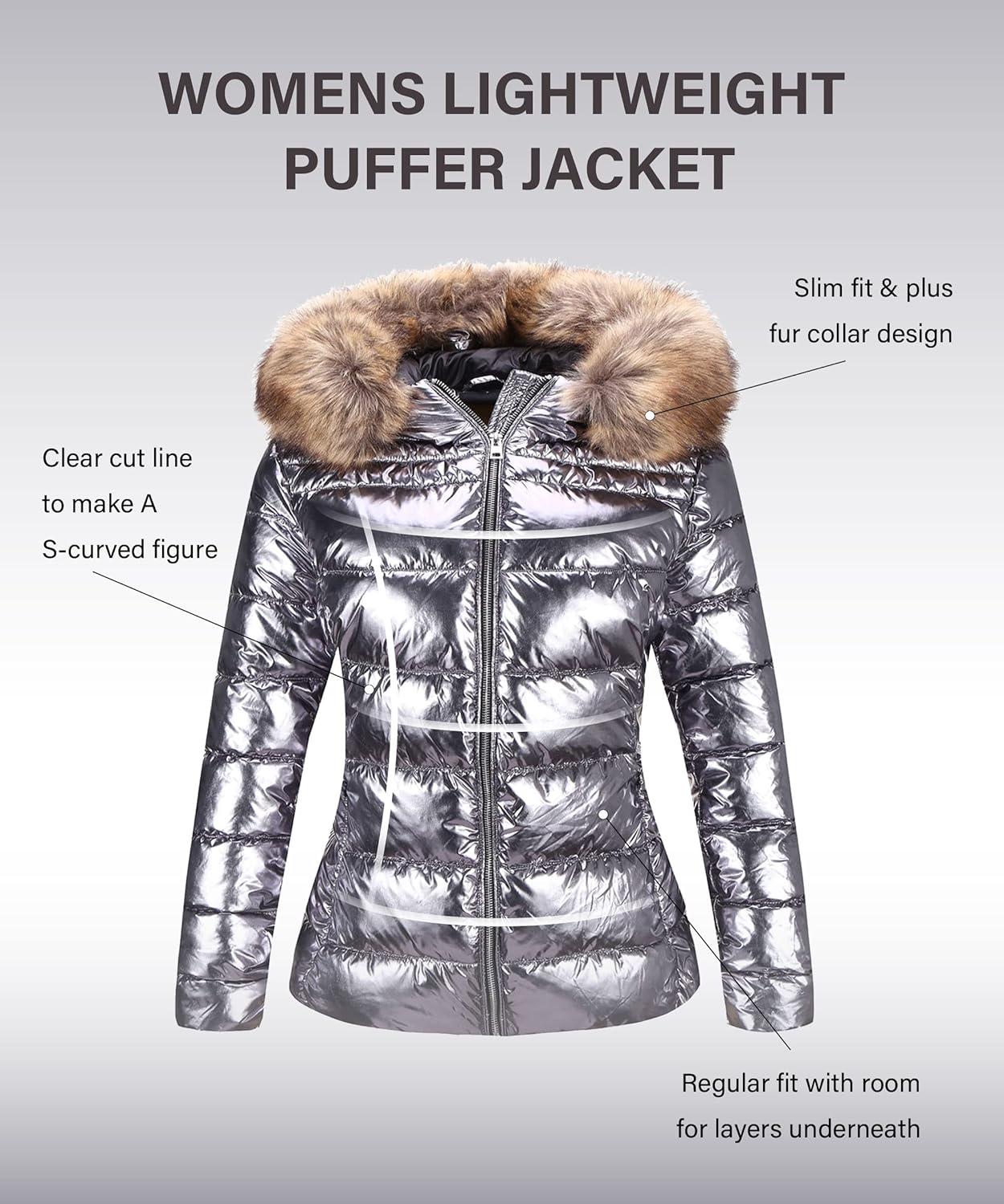 Bellivera Womens Lightweight Puffer Jacket, Winter Coats for Women Warm Quilted Bubble Padded Hood Coat with Faux Fur Collar(Sliver)