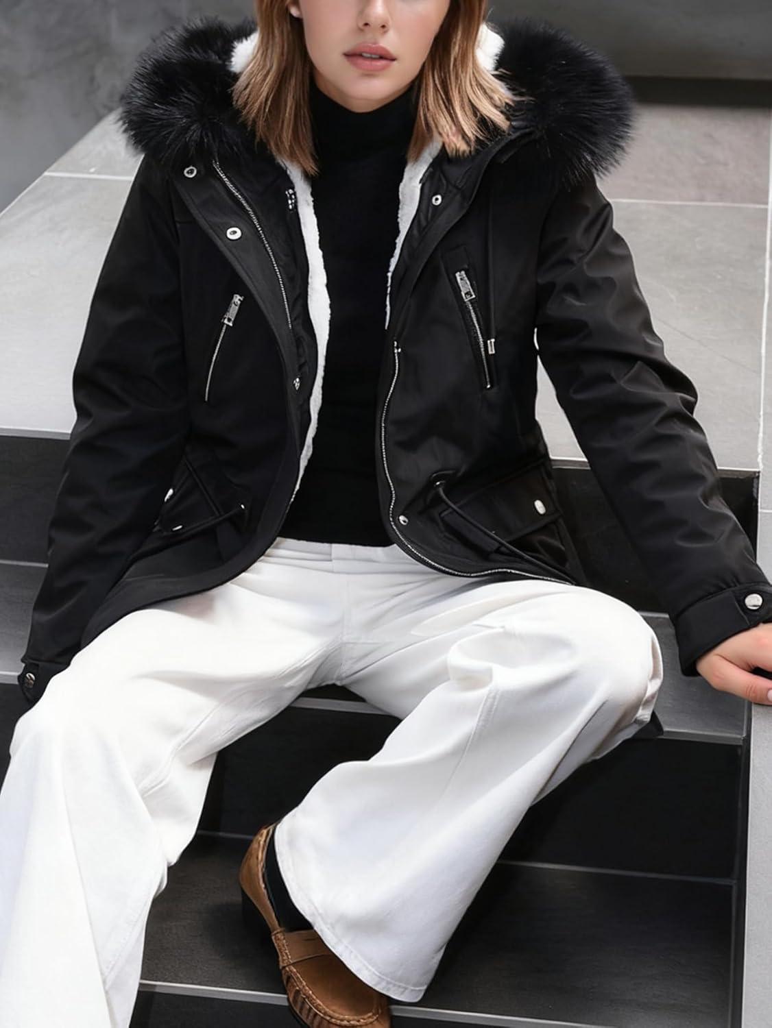 This parka jacket is designed to keep you warm and stylish during the colder months. The relaxed fit and adjustable drawstring waist make it a comfortable and flattering choice for all body types. Featuring a classic hood with faux fur trim, this parka adds a touch of sophistication and coziness to any outfit. The multiple pockets offer practicality and convenience, allowing you to keep your essentials close at hand while on the go