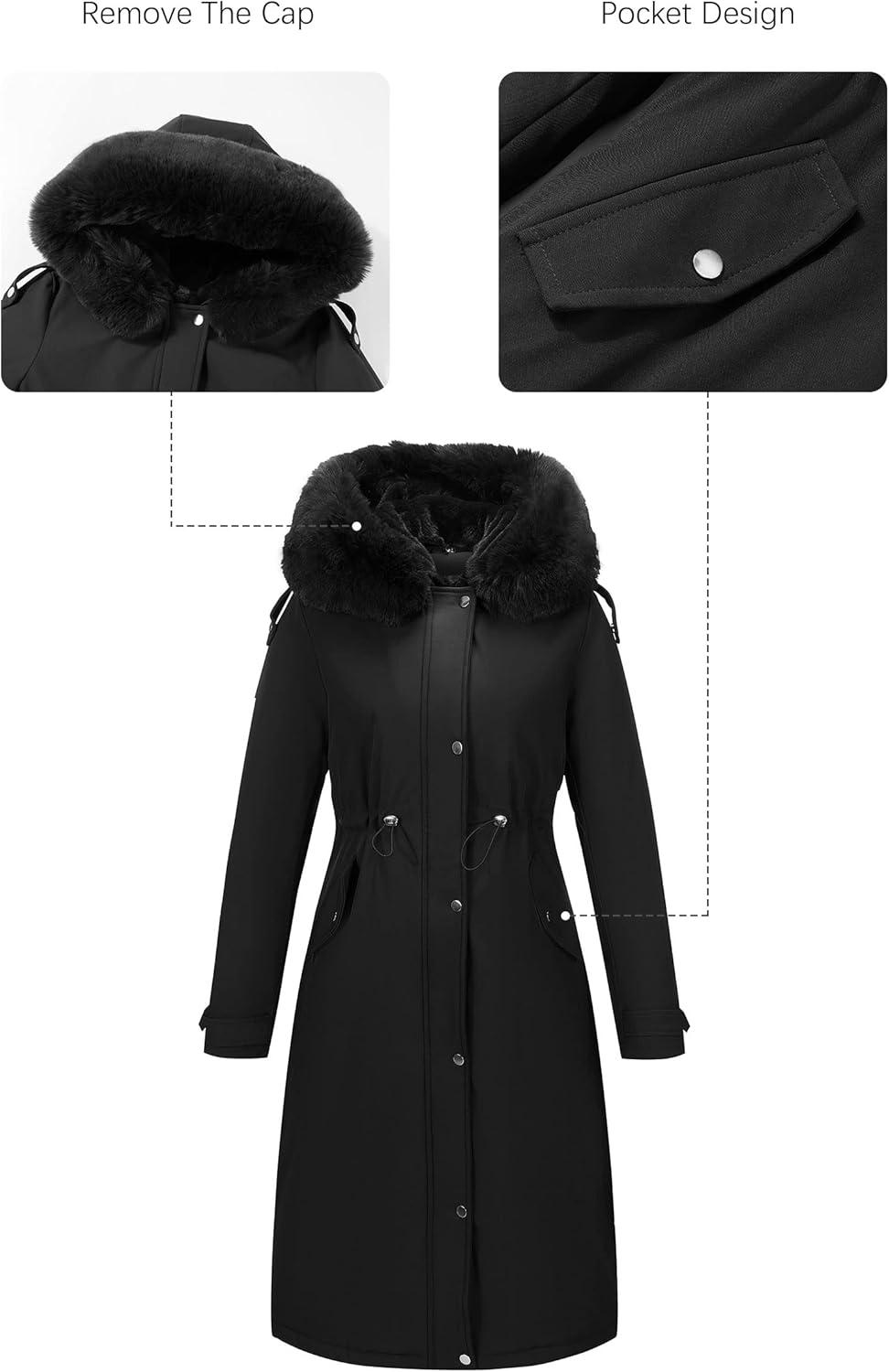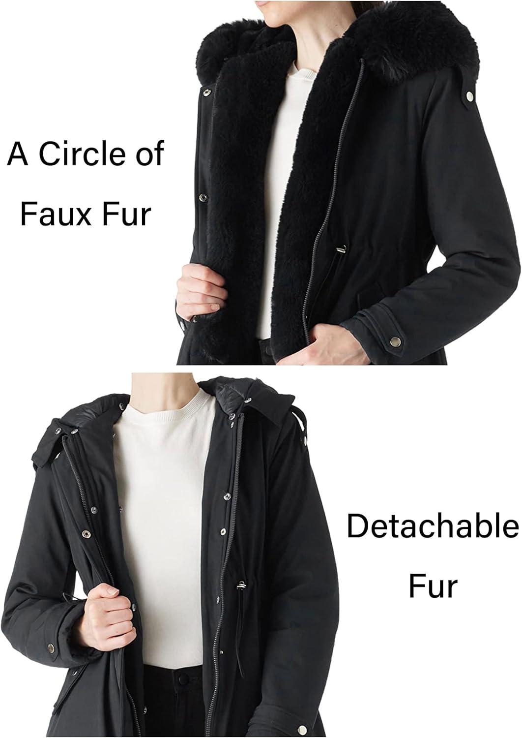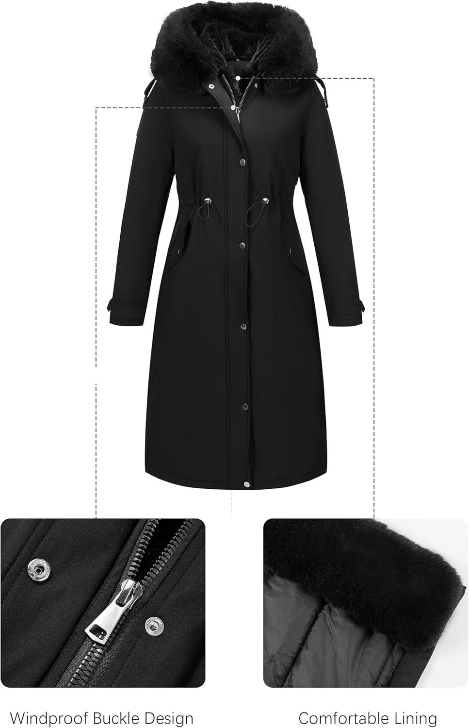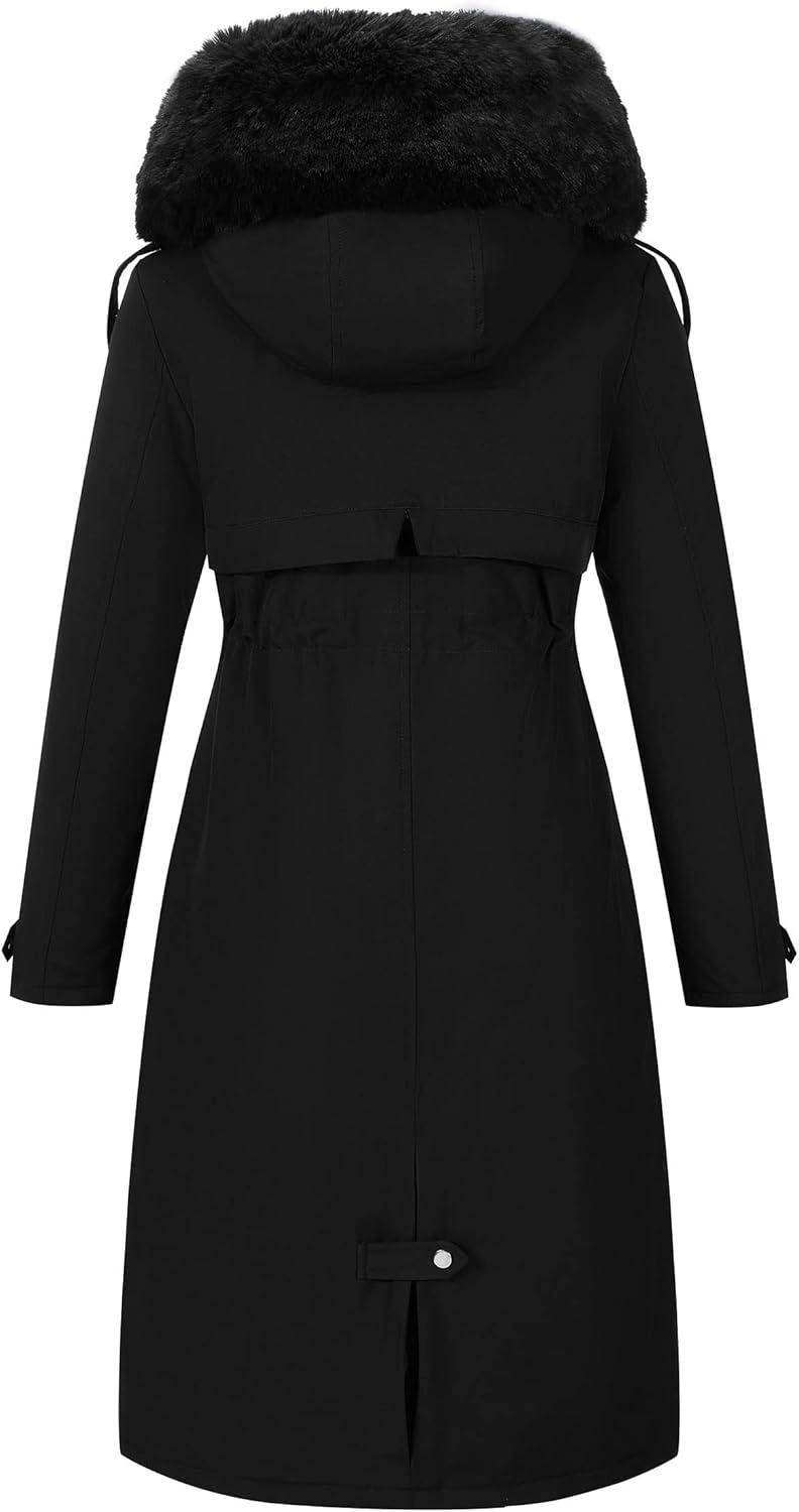 Bellivera Women’s Plus Size Parka Jacket Long Winter Warm Hooded Zipper Coat(Black Coat)