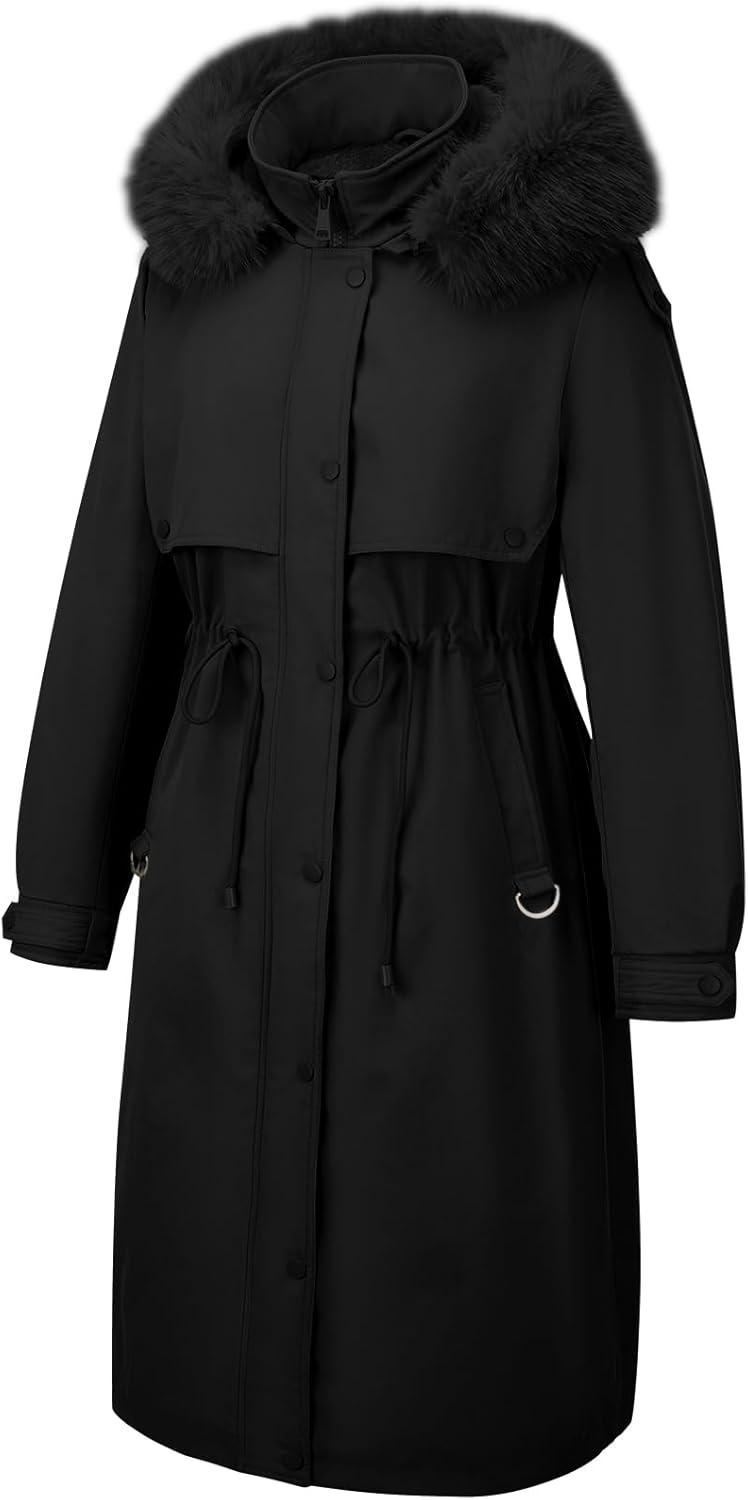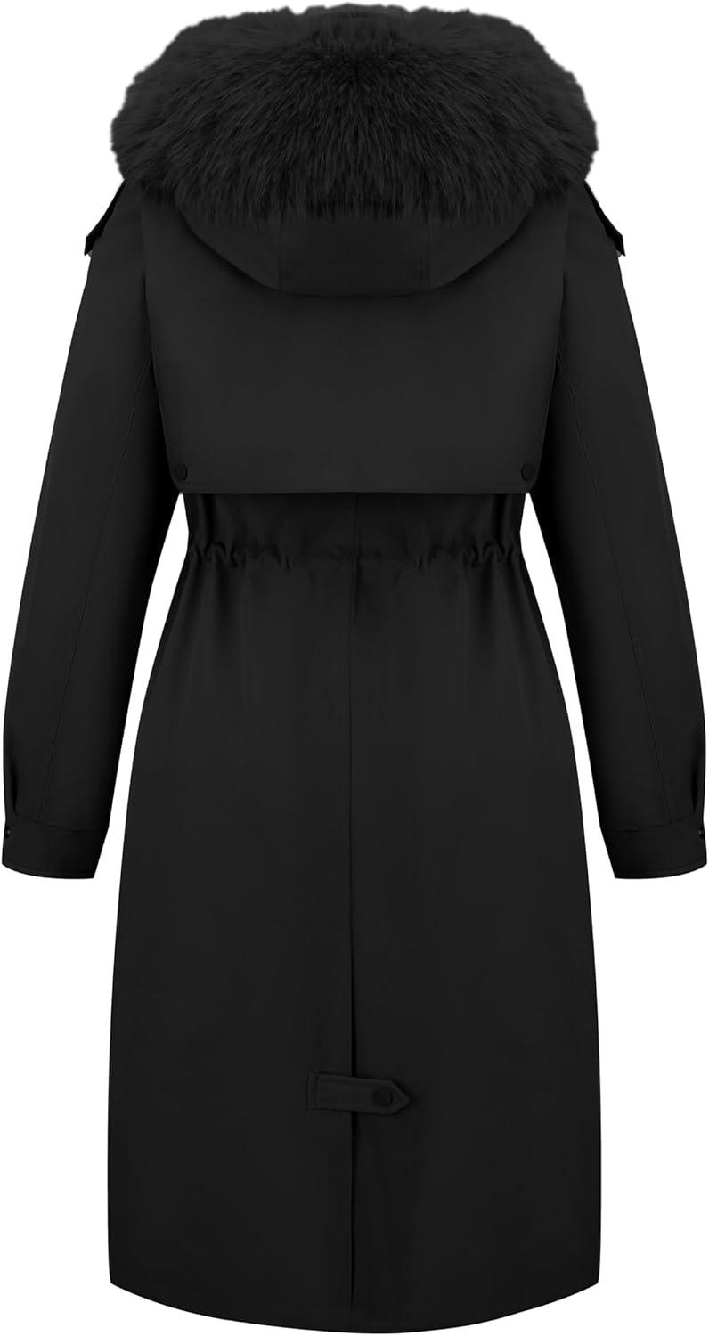 Bellivera Women Twill Parka Jacket Winter Trendy Warm Hood Coat with Faux Fur Collar(Black)