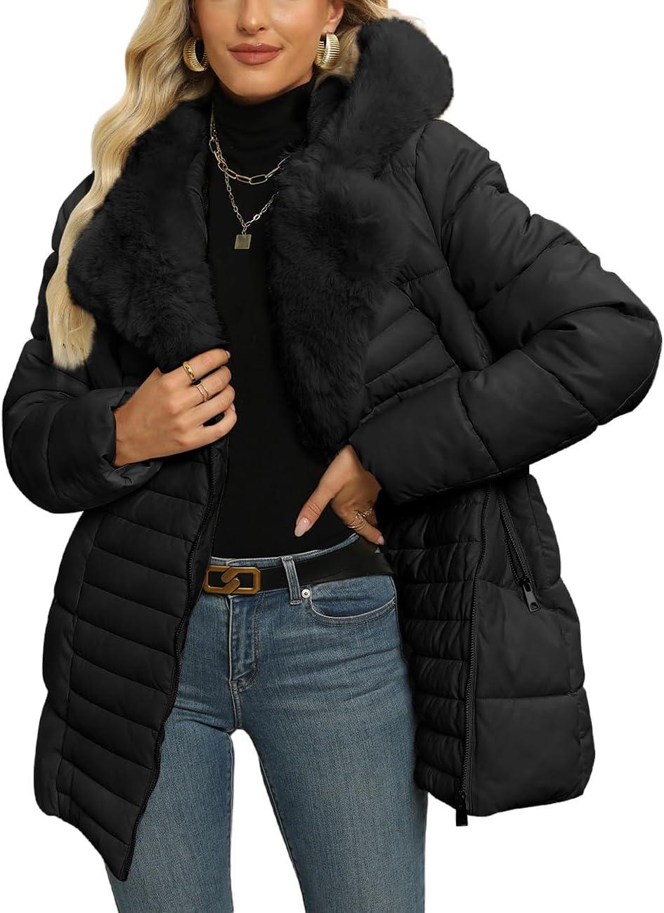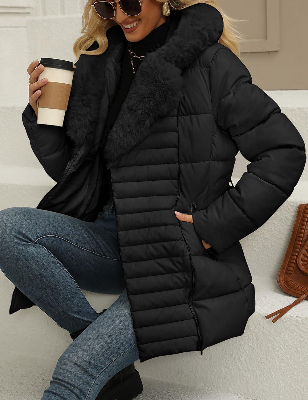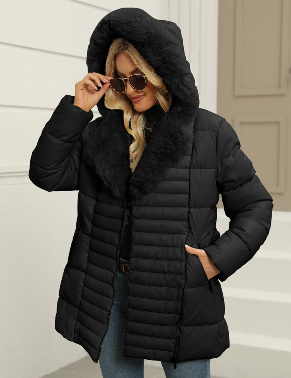 Bellivera Womens Plus Size Puffer Coats Sherpa-lined Jacket Thicken Overcoat with Hood(Black With Hood)