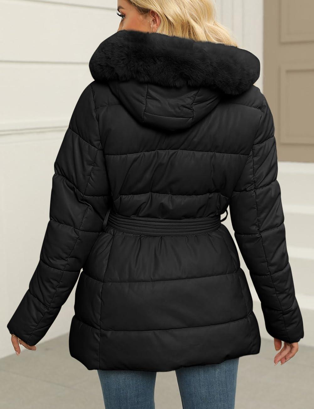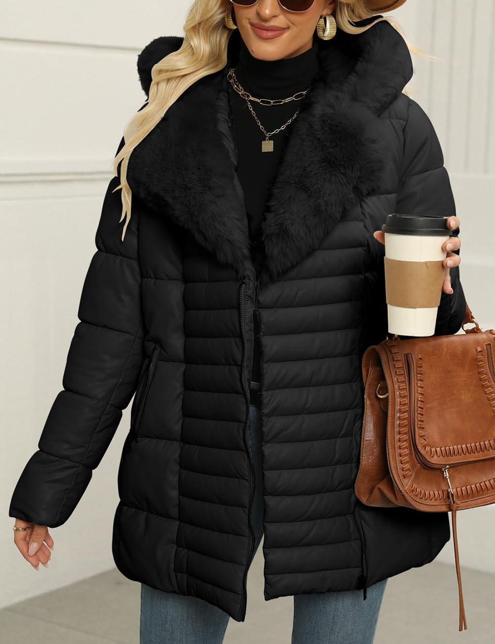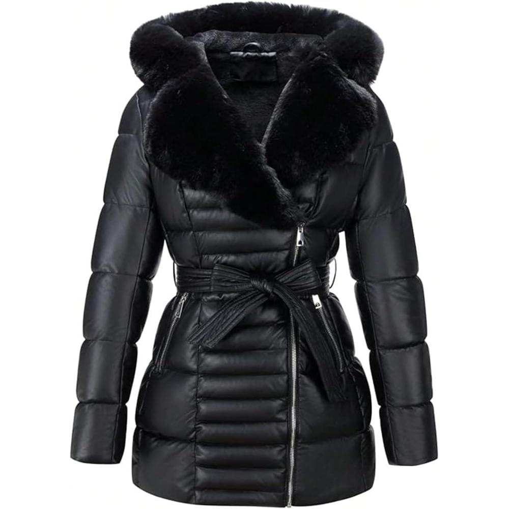 Bellivera Womens Plus Size Puffer Coats Sherpa-lined Jacket Thicken Overcoat with Hood(Black With Hood)