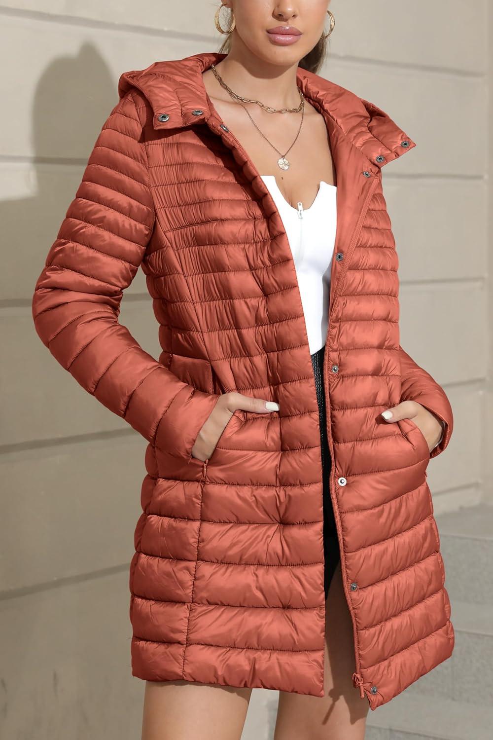 Bellivera Women’s Quilted Lightweight Puffer Jacket, Winter Coats for Women Long Padded Bubble Coat(7148a Orange)