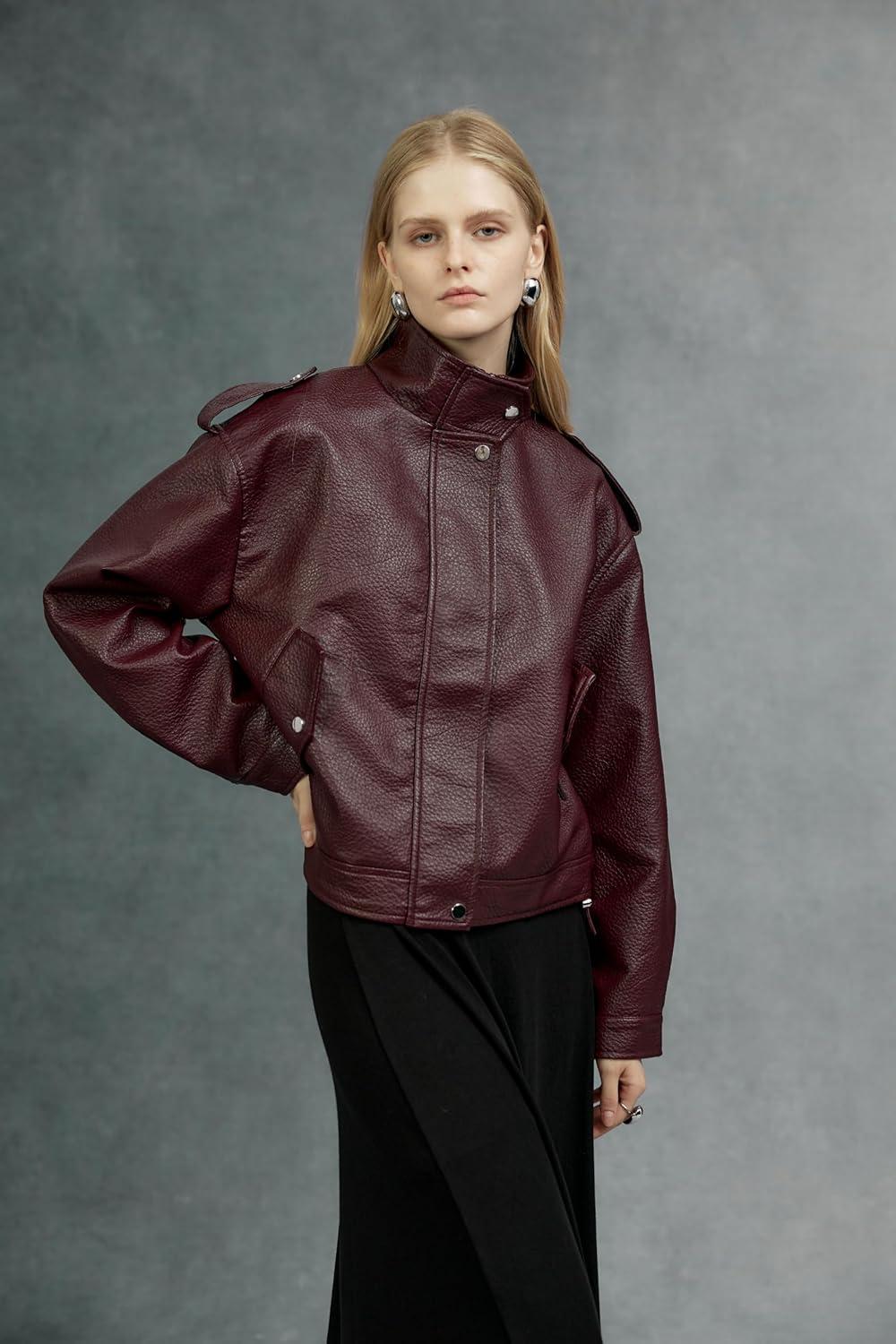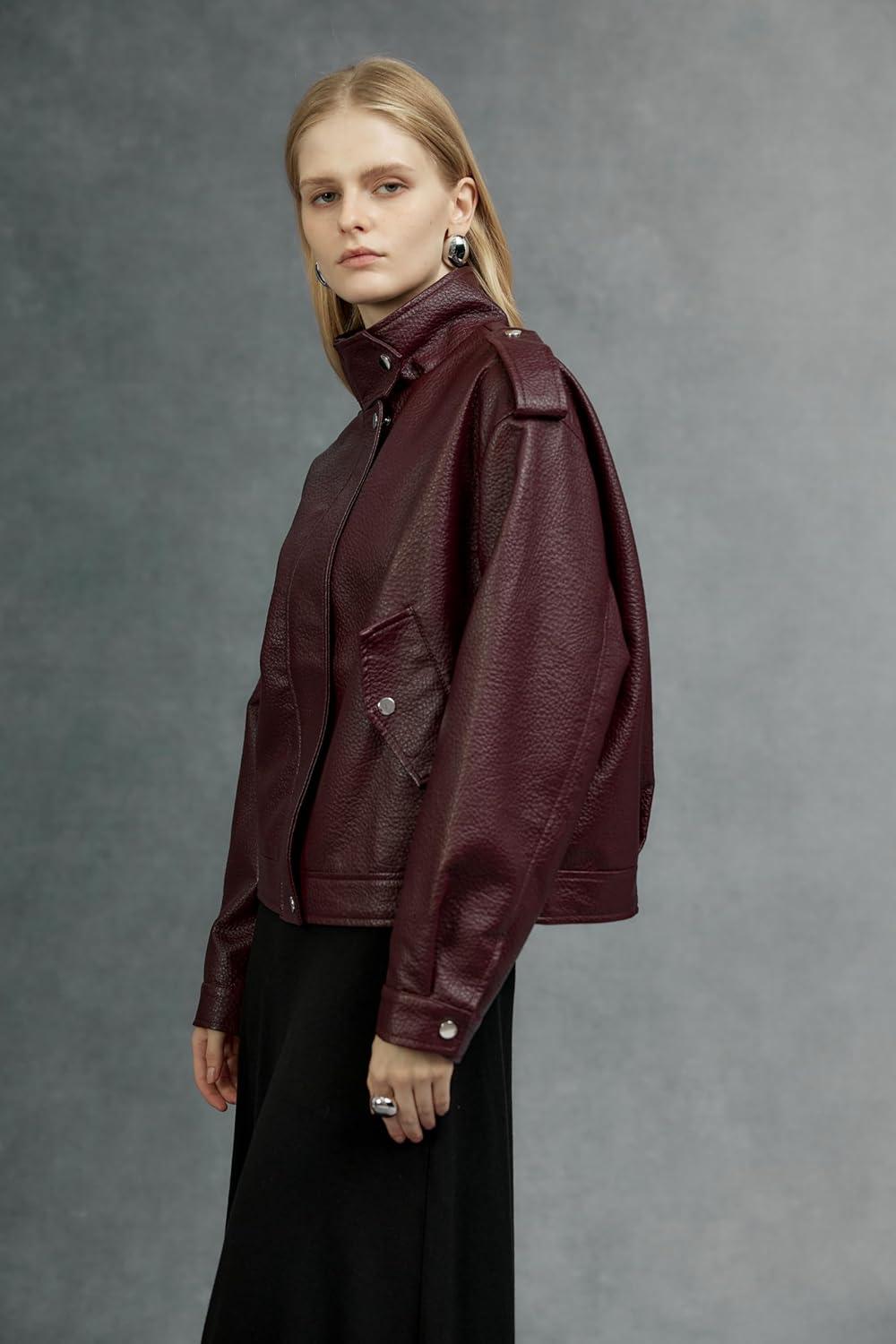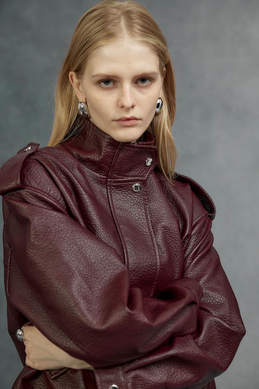 Bellivera Women’s Trench Coat Long Jacket Faux PU Leather Oversize Classic Lapel fashion Overcoat with Belt(Wine)