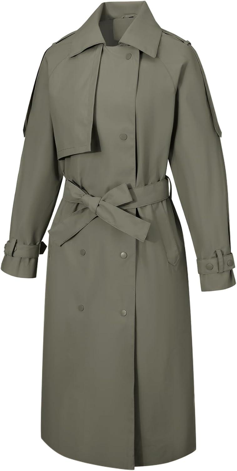 Bellivera Women’s Trench Coat Long Loose Jacket Spring Fall Overcoat with Belt(Green)