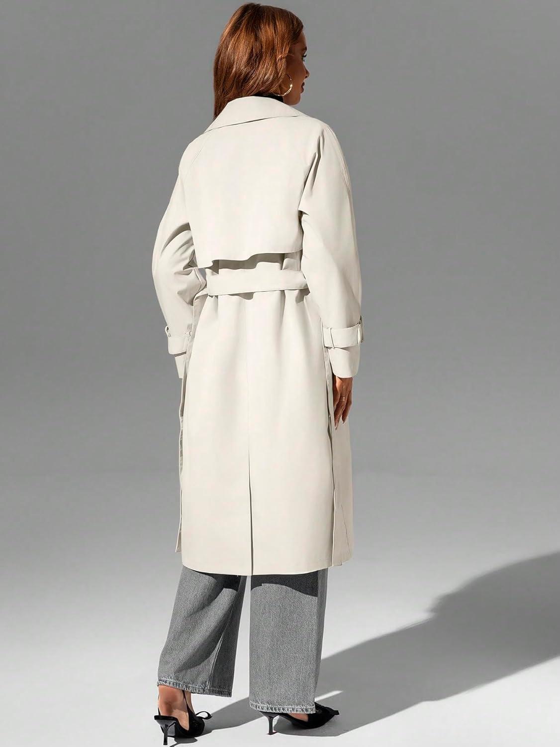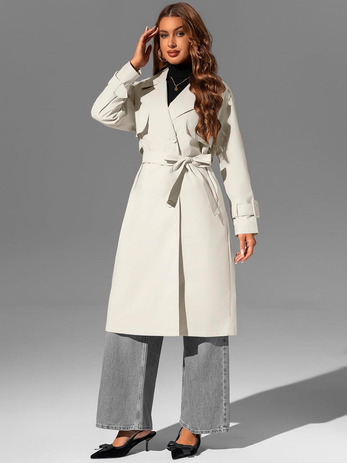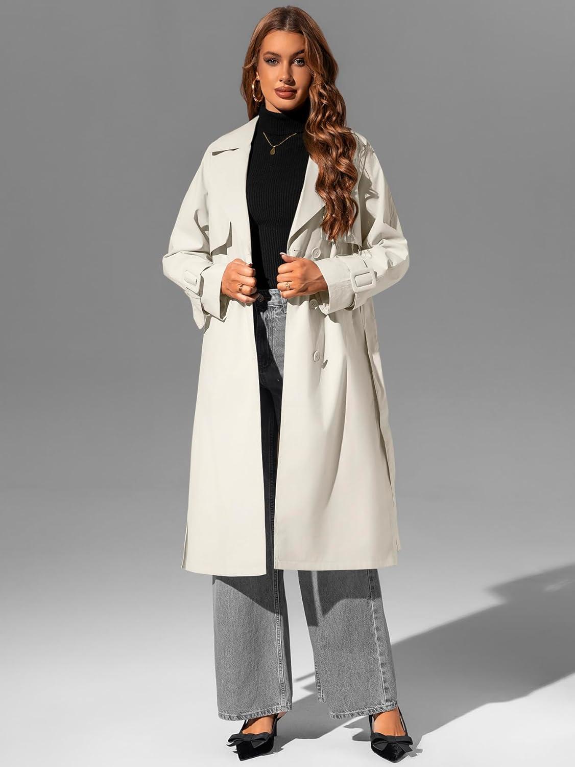 Bellivera Women’s Trench Coat Long Loose Jacket Spring Fall Overcoat with Belt(Icewhite)